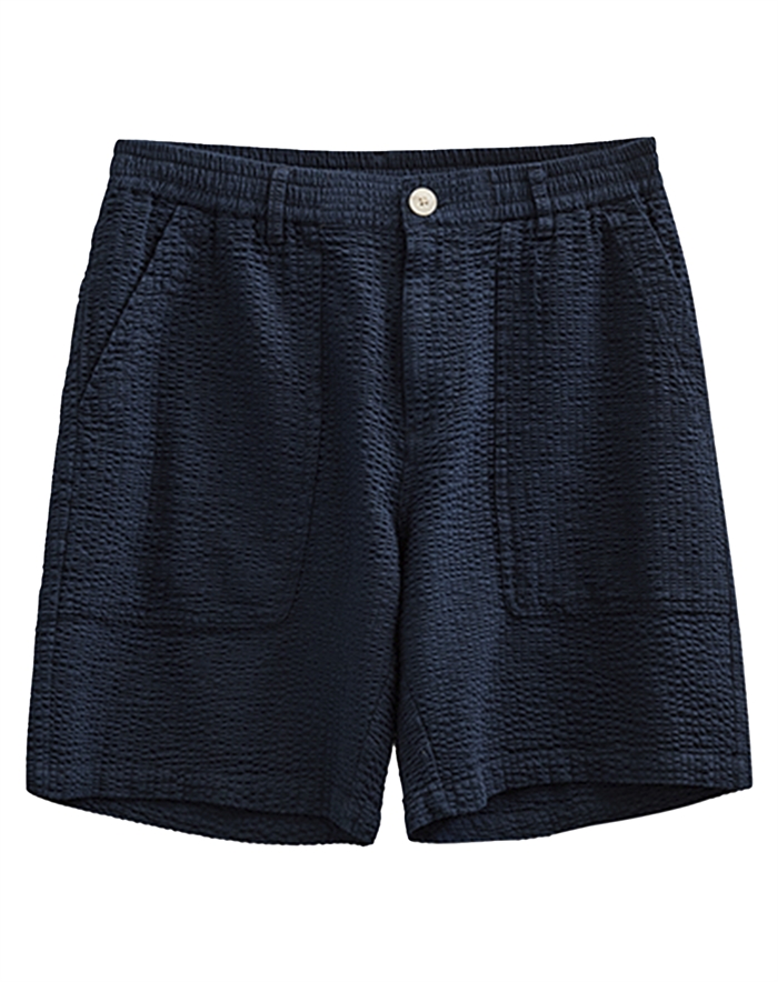 Hvorfor du vil elske dem? Seersucker-materialet er kendt for sin karakteristiske tekstur, som ikke kun tilføjer et visuelt element, men også sikrer, at shortsene føles lette og luftige mod huden. Farven Sky Captain giver dig et sofistikeret alternativ til de lysere sommerfarver, samtidig med at den er nem at matche med andre nuancer. Derudover er snittet ofte designet til at passe godt og give bevægelsesfrihed, hvilket er ideelt til aktive dage.