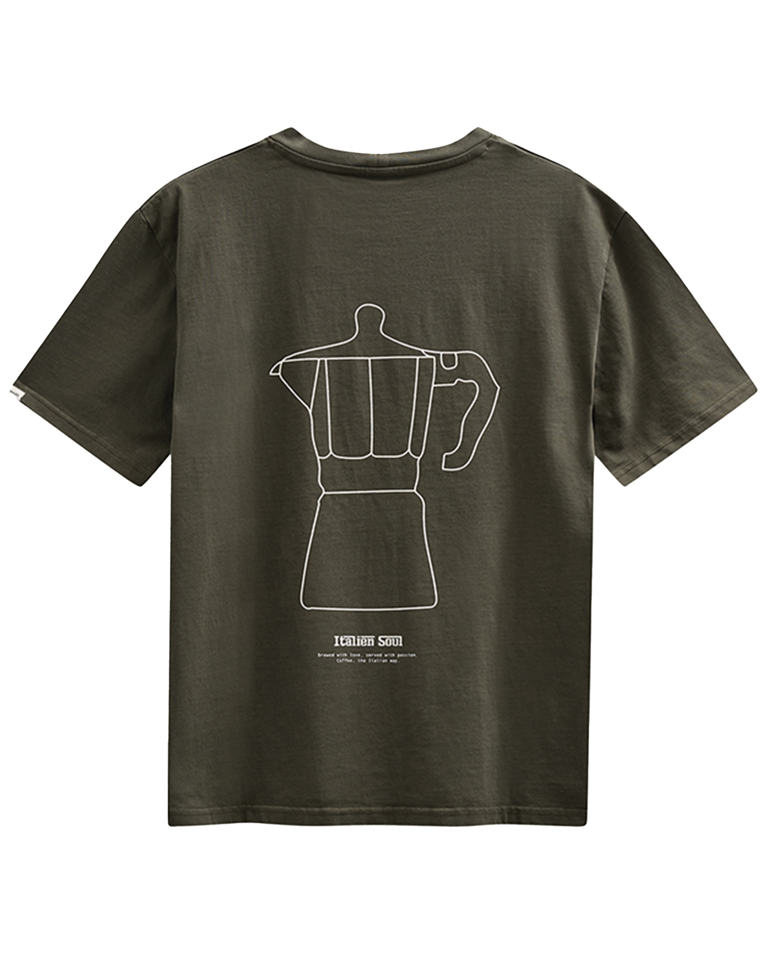 Hvorfor vil du elske denne t-shirt? For det første er den skabt med et øje for detaljer, der gør den til en alsidig del af enhver garderobe. Den subtile farve gør den velegnet til både dag og aften, mens den klassiske t-shirtform sikrer en behagelig pasform, der sjældent går af mode. Og så er der selvfølgelig den tidløse association til italiensk design og kaffe – en kombination, der taler til både hjerte og sjæl.