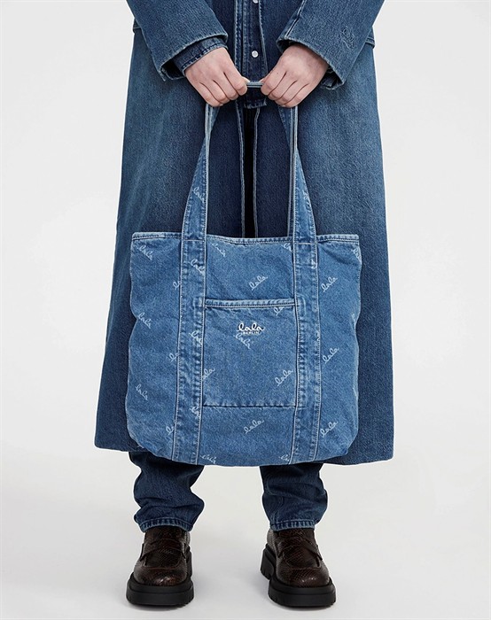 Carmela Printed Logo Denim Taske - Washed Blue