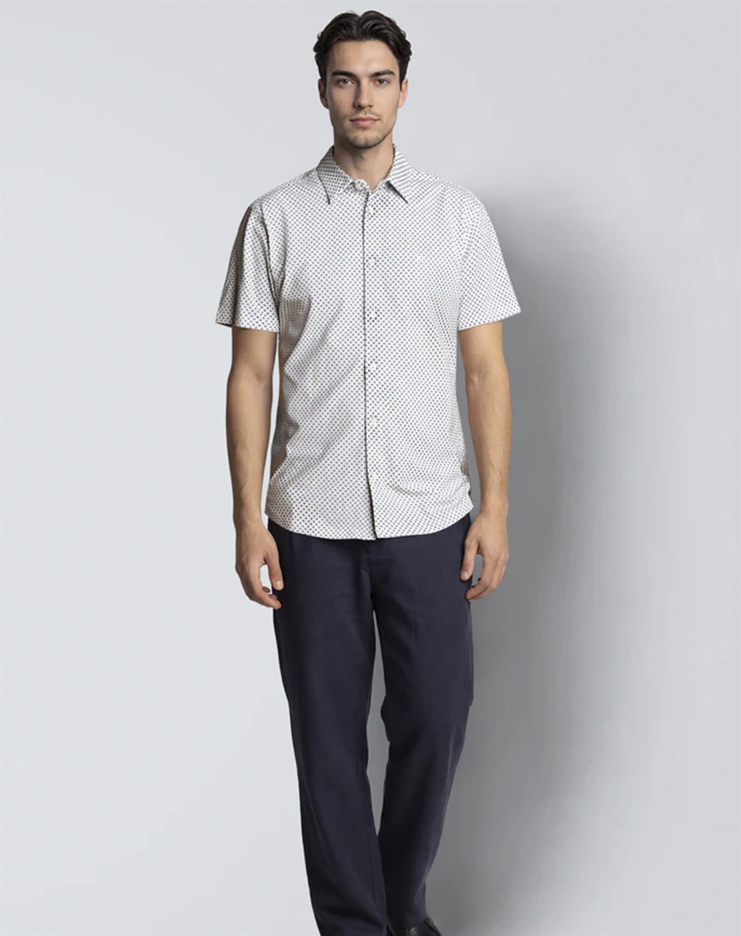 Hvorfor vil du elske denne skjorte? For det første dens tidløse farvekombination, der let kan tilpasses et hav af outfits. For det andet, designet, der ofte er udformet med en strækfunktion, hvilket kan give en behagelig pasform, der følger kroppens bevægelser. Og så er der den lille detalje med det diskrete mønster, der tilføjer karakter uden at overmande.