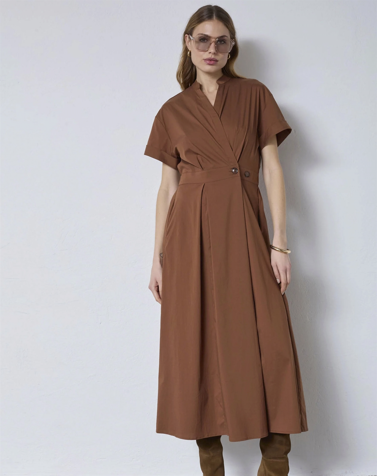 Hvorfor vil du elske denne kjole? Først og fremmest, dens wrap-design er både flatterende og behageligt, hvilket gør den ideel til længere brug. Den varme Suntan-farve giver en tidløs charme, der passer til enhver hudtone. Og med Co' Couture's sans for detaljer, kan du være sikker på, at du får en kjole, der både er stilfuld og af høj kvalitet. Lad denne kjole blive en del af din garderobe og oplev, hvordan den kan løfte din stil til nye højder uden at du behøver at anstrenge dig."}