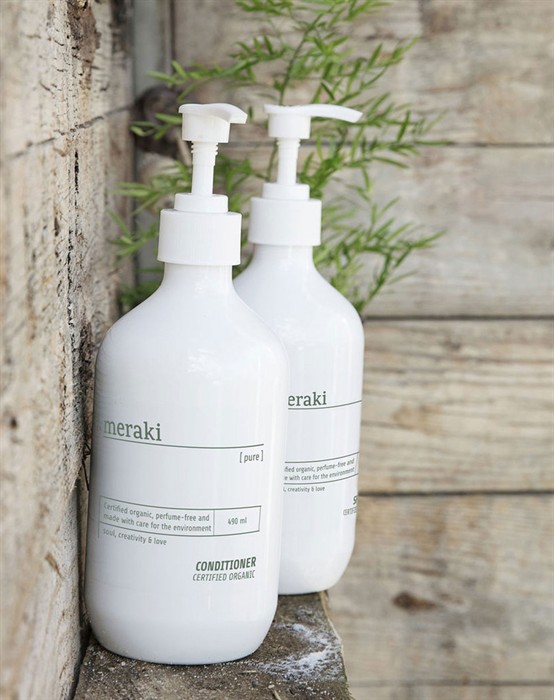 Conditioner - Pure - MerakiLækker balsam fra populære Meraki, der er særligt udviklet til dig, der gerne vil undgå skadelig kemi og samtidig ønsker et velplejet hår. Denne balsam fra den parfumefri Pure-serie plejer og fugter din hovedbund og dit hår og indeholder økologisk kokosolie og aloe vera. Oplagt til dig, der har sensitiv hud. Fordel en passende mængde i håndfladerne, og fordel balsammen i hårets længder. Anvend efter behov. Find alle de lækre produkter fra Meraki lige her.