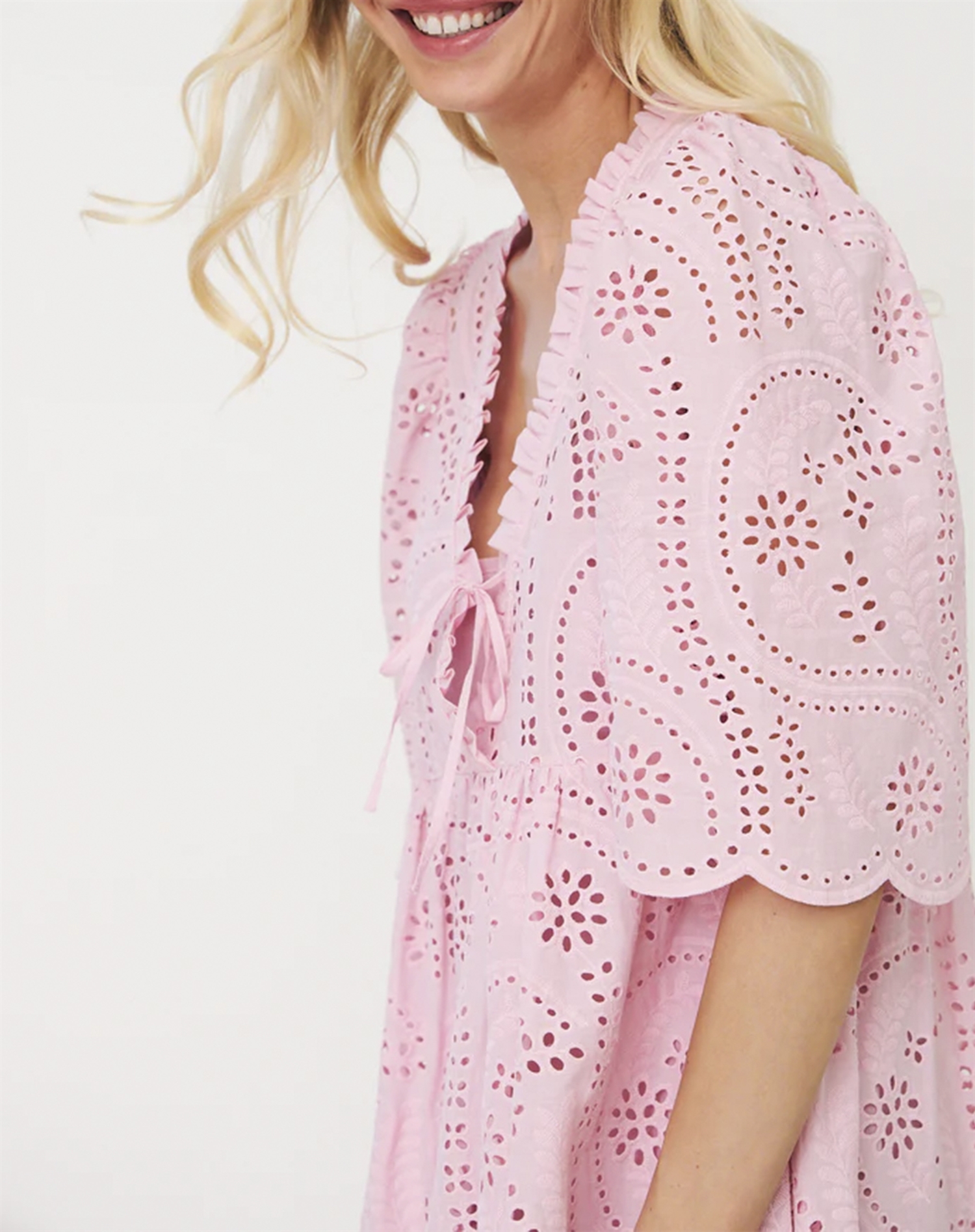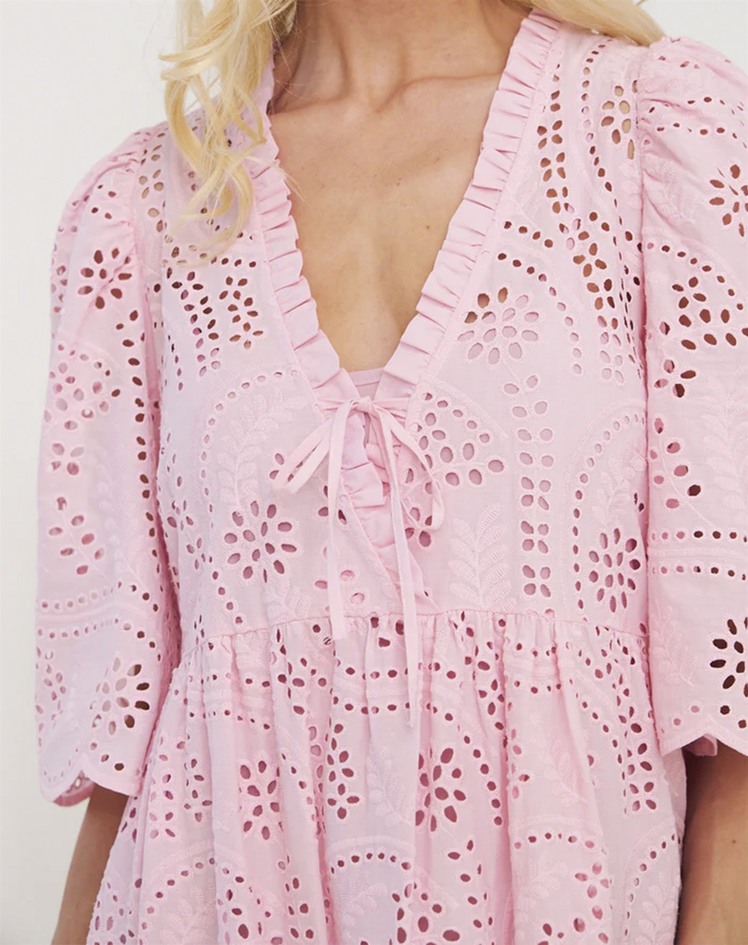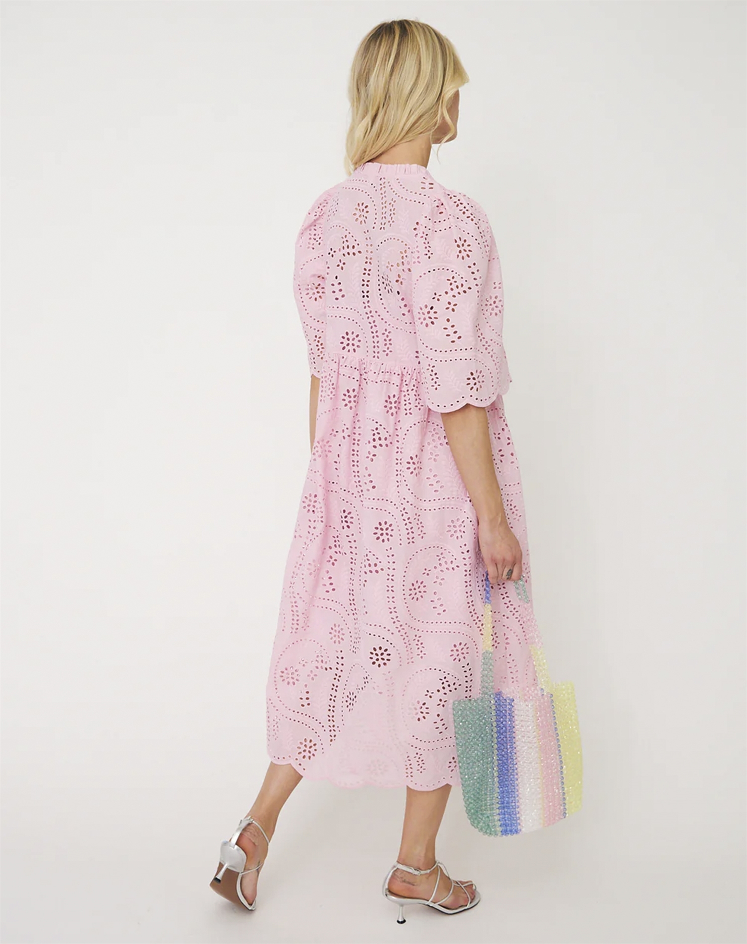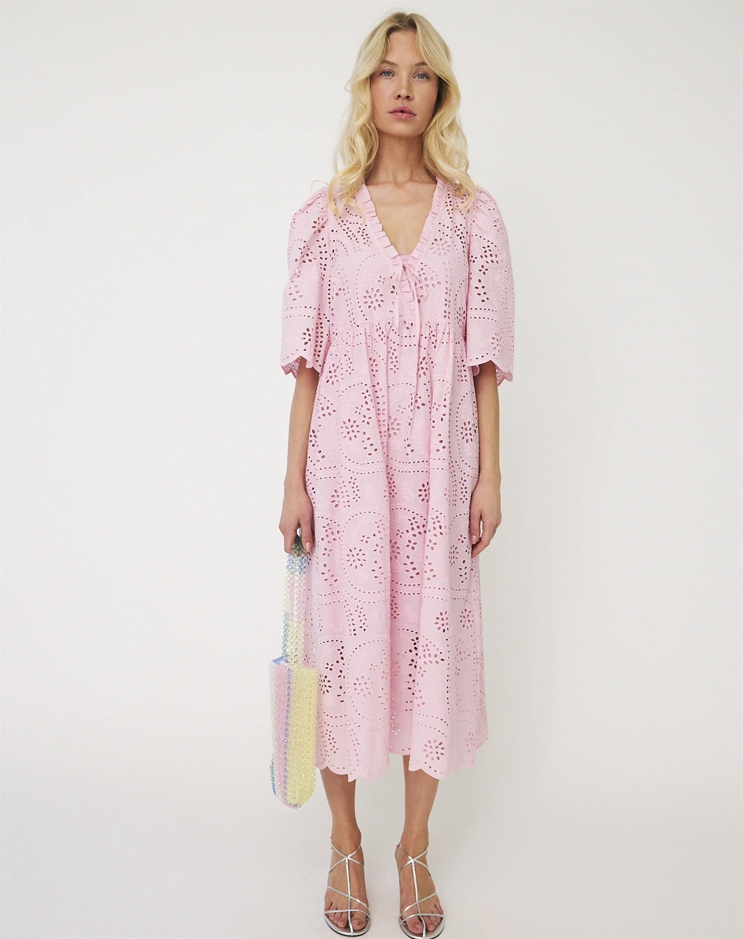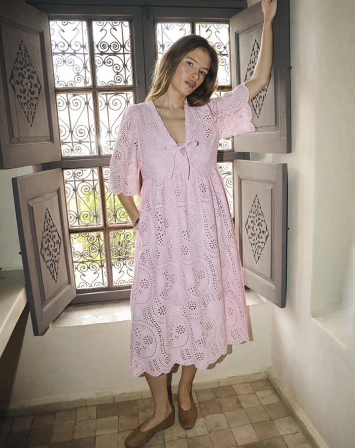 Forestil dig at bære denne kjole til en afslappet picnic i parken, eller når du strosser gennem byens gader med en let brise, der kærtegner stoffet. Kombinér den med et par enkle sandaler for et casual look, eller tilsæt et par hæle og smykker for en mere elegant udstråling til aftenbrug. Kjolen er også et godt bud til sommerens havefester, hvor dens lethed og farve vil få dig til at skille dig ud på den mest charmerende måde.