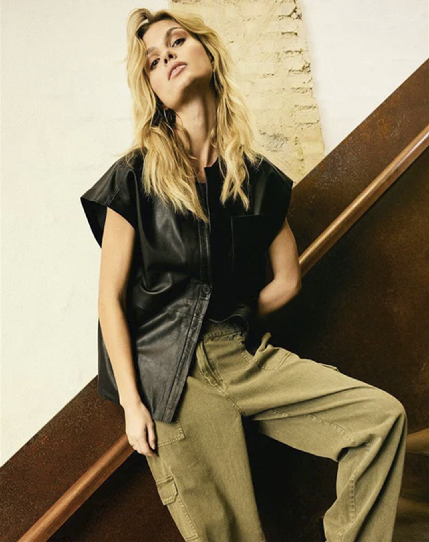 Overvej at bære vesten over en let skjorte for et sofistikeret look på kontoret, eller style den med et par slidte jeans og en simpel t-shirt for et mere afslappet, men stadig trendy udtryk. Den sorte farve gør det nemt at kombinere med andre farver, og vesten kan fungere som en alsidig lag-på-lag mulighed, der giver dybde til dit outfit uden at virke for tung.