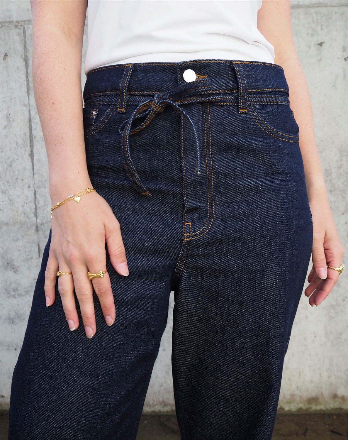 Elijah Jeans - Dark Blue - Day Birger et MikkelsenIkoniske jeans i en ny vask. Bindebånd i taljen. Høj talje, som du også kan lade falde lavt. Brede ben. Vi anbefaler, at hvis du svinger mellem to størrelser, så skal du vælge den mindste.