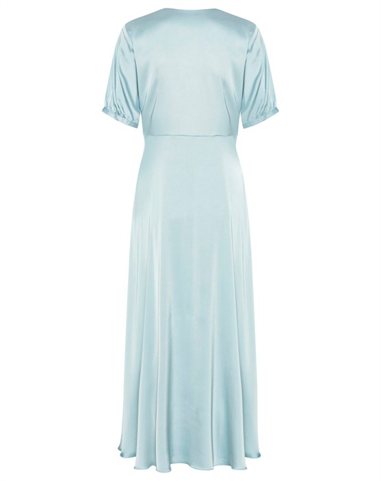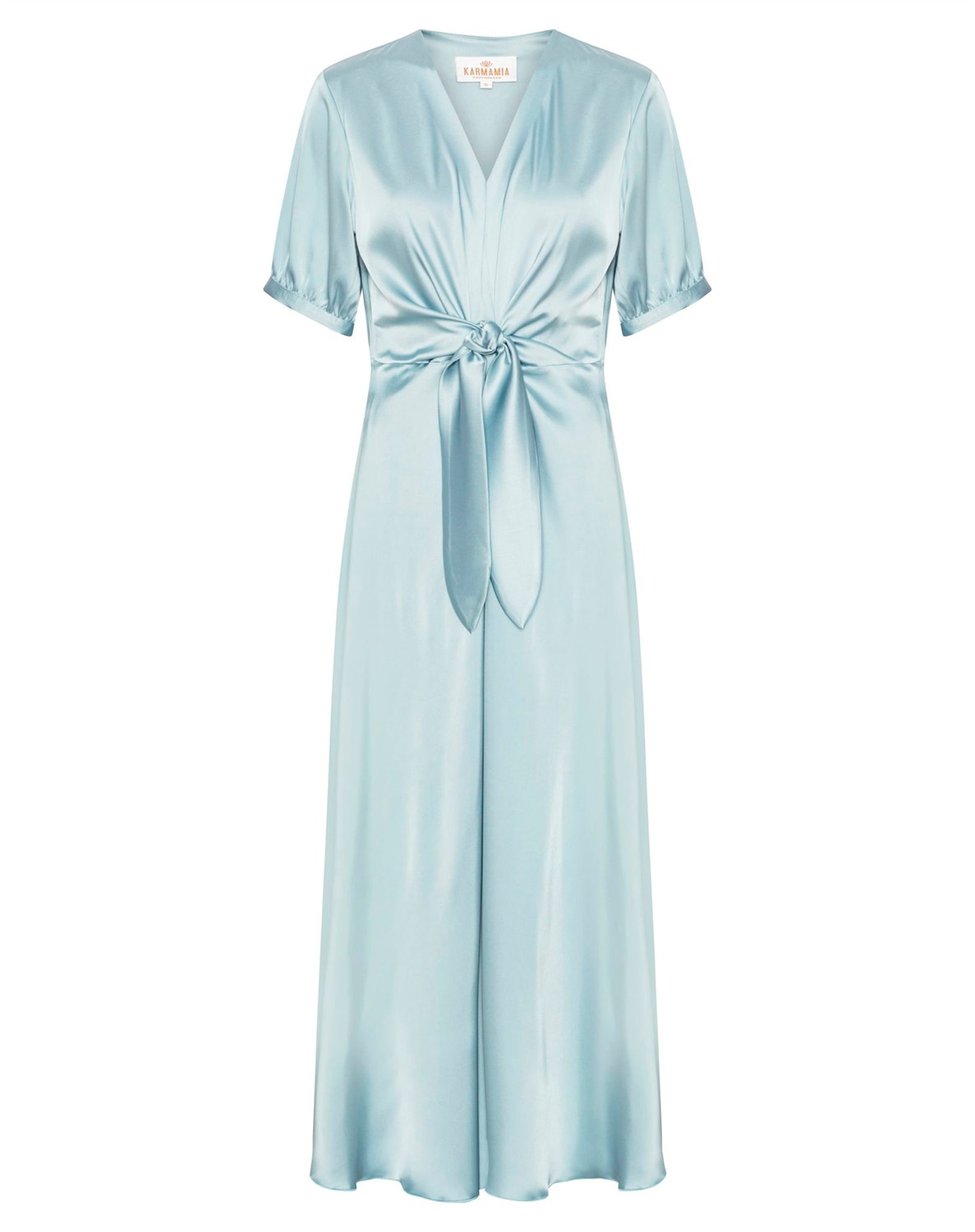 Karmamia Copenhagen - Faye Kjole – Semi Rich SkyLyseblå maxikjole.Bindebånd, som bindes foran.V-udskæring.Kort ærme. Komfortabelt og eksklusivt materiale.Style den smukke lyseblå Faye kjole med et par sandaler eller høje hæle fra Billi Bi. Tilføj din yndlings blazer fra Day derover.