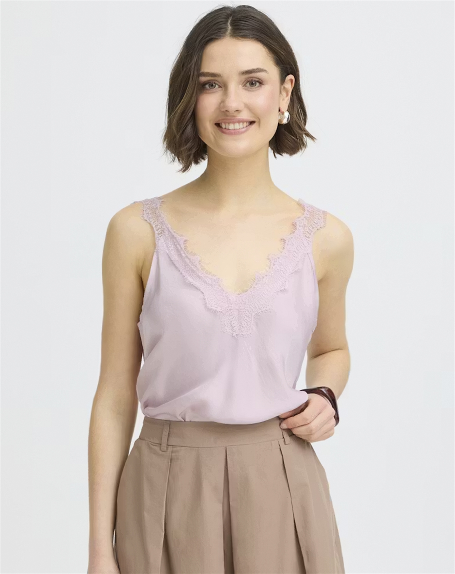 Denne top er et skønt bud på, hvordan man kan forene enkelhed med elegance, og den vil med sikkerhed finde en særlig plads i din garderobe. Med Fransa - FRCeleste Top 1 - Rose Smoke står du klar til at møde verden med et strejf af ynde og stil.