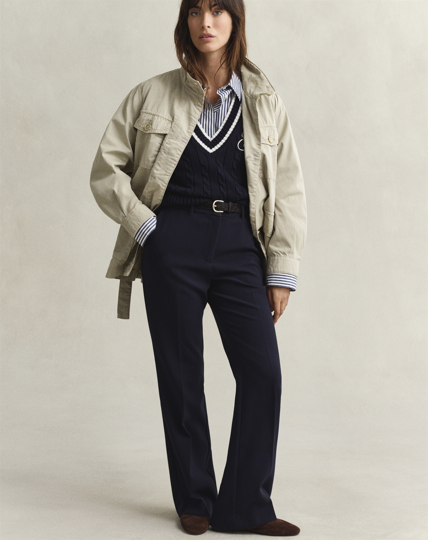 Den belted field jakke er ideel til både byvandringer og udflugter i naturen. Style den med et par mørke jeans og en chunky strik for et afslappet, men sofistikeret look. Eller prøv den over en skræddersyet skjorte for et mere formelt udtryk. Med sin neutrale farve er den nem at kombinere med stort set alt i din garderobe.