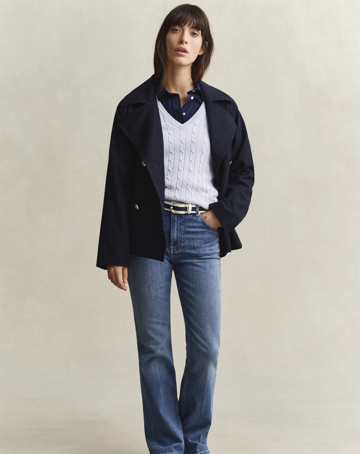 Forestil dig at kombinere denne lette blå strik med et par mørke jeans og nogle enkle sneakers for et afslappet hverdagslook. Eller par den med en skarp, hvid skjorte under, og du har en klassisk stil, der nemt kan tages fra kontoret til middagsaftaler. Dens alsidighed gør den til et godt valg til både hverdag og mere formelle sammenhænge.