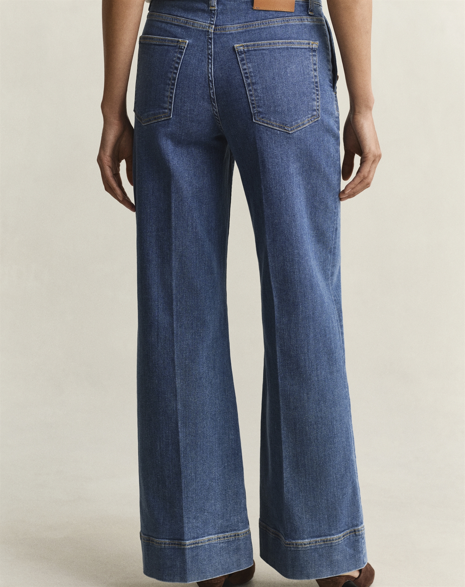 Du vil elske dem for deres flared silhuet, der ofte giver en flatterende effekt ved at fremhæve benets længde. Den mid blue farve er alsidig og passer til stort set alt i din garderobe. Desuden er de fra Gant, hvilket ofte betyder kvalitet og en sans for de små, stilfulde detaljer, som gør dem til en favorit i enhver modebevidst garderobe.