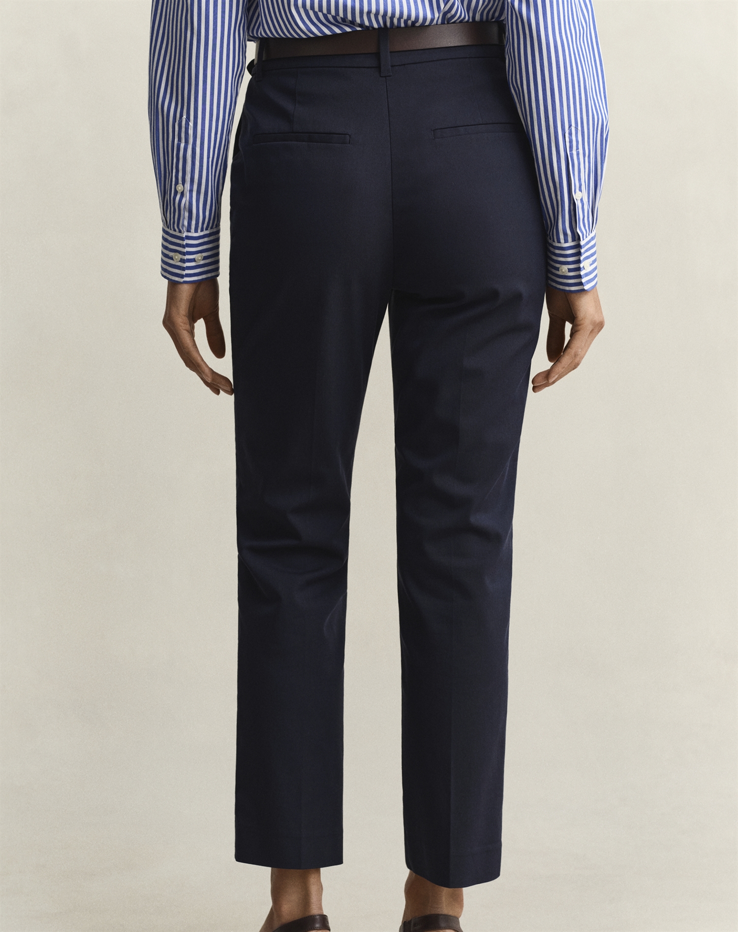 Du vil elske disse bukser for deres alsidighed og tidløse design. Den slanke pasform sikrer, at de sidder perfekt, mens den dybe blå nuance er nem at matche med andre elementer i din garderobe. Derudover er de fra Gant, et mærke kendt for sin kvalitet og sans for detaljer, hvilket giver dig tryghed for et godt køb. Uanset om det er til kontoret eller en aften ude, vil disse bukser hurtigt blive en favorit i din garderobe.