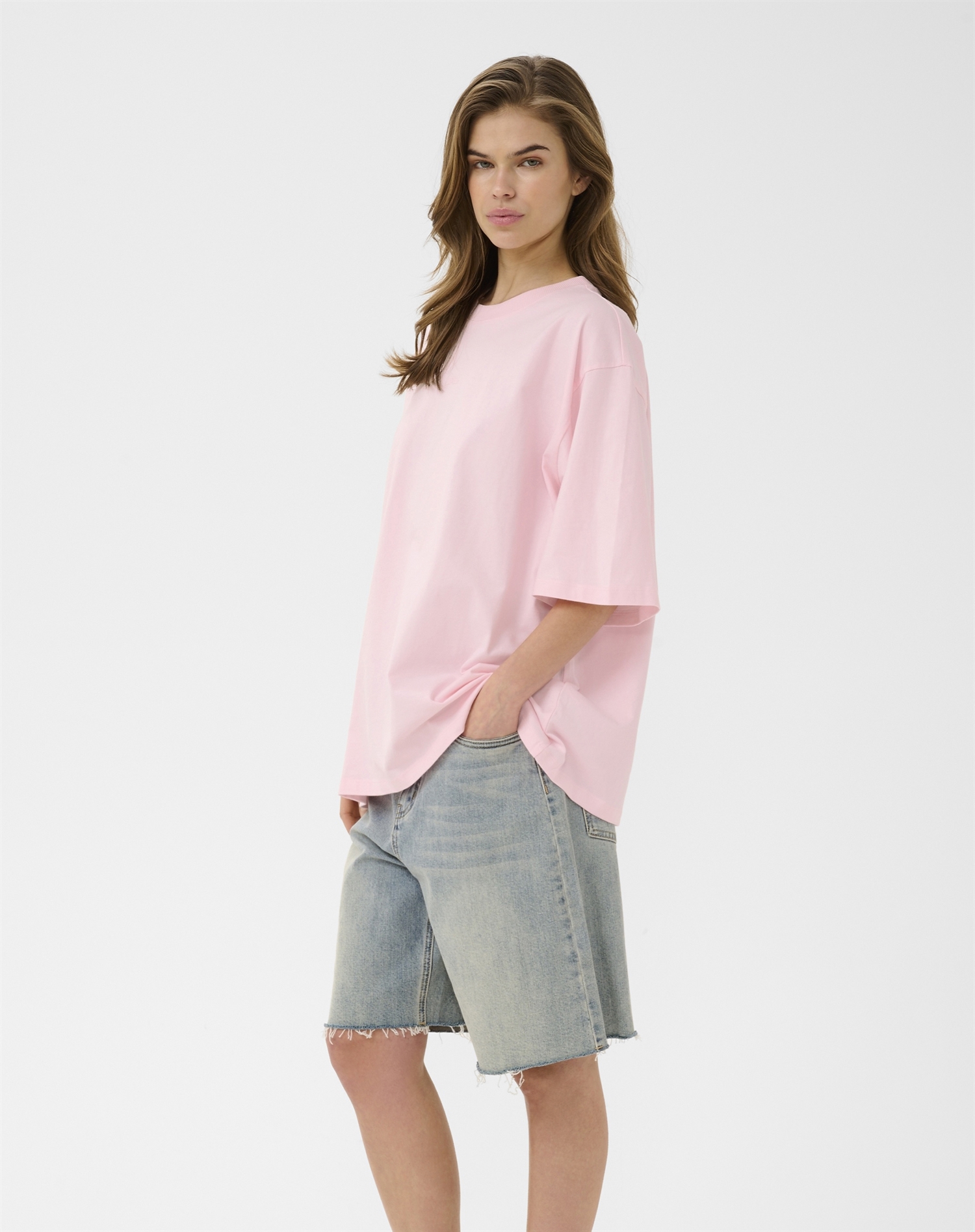 Prøv at style denne t-shirt med et par højtaljede jeans for et ubesværet chic look, eller kombiner den med en elegant nederdel for at skabe et mere sofistikeret udtryk. Den dæmpede farve "Ballet Slipper" fungerer som den perfekte base, der kan mikses og matches med både neutrale toner og mere dristige farver, afhængigt af dit humør og anledning.
