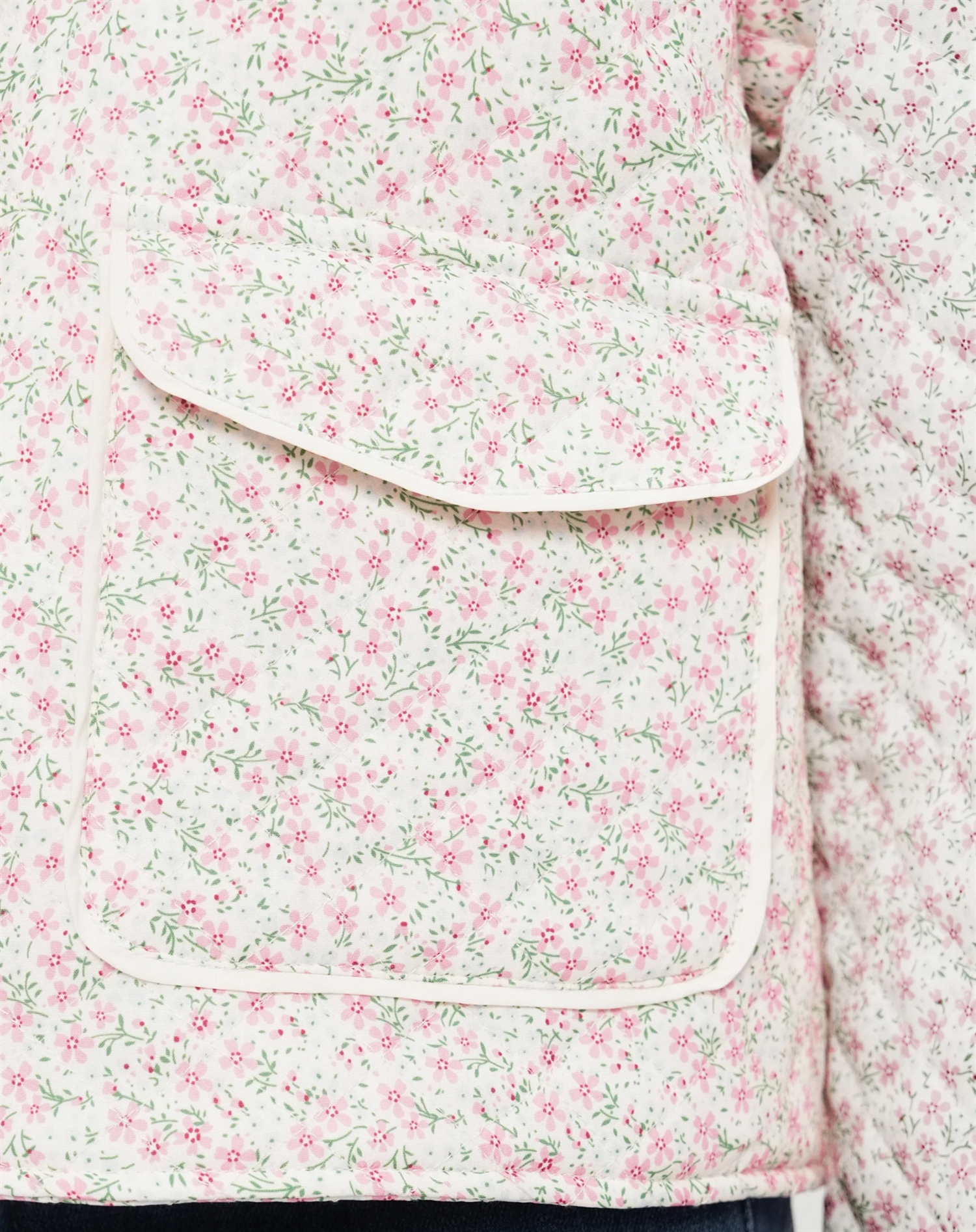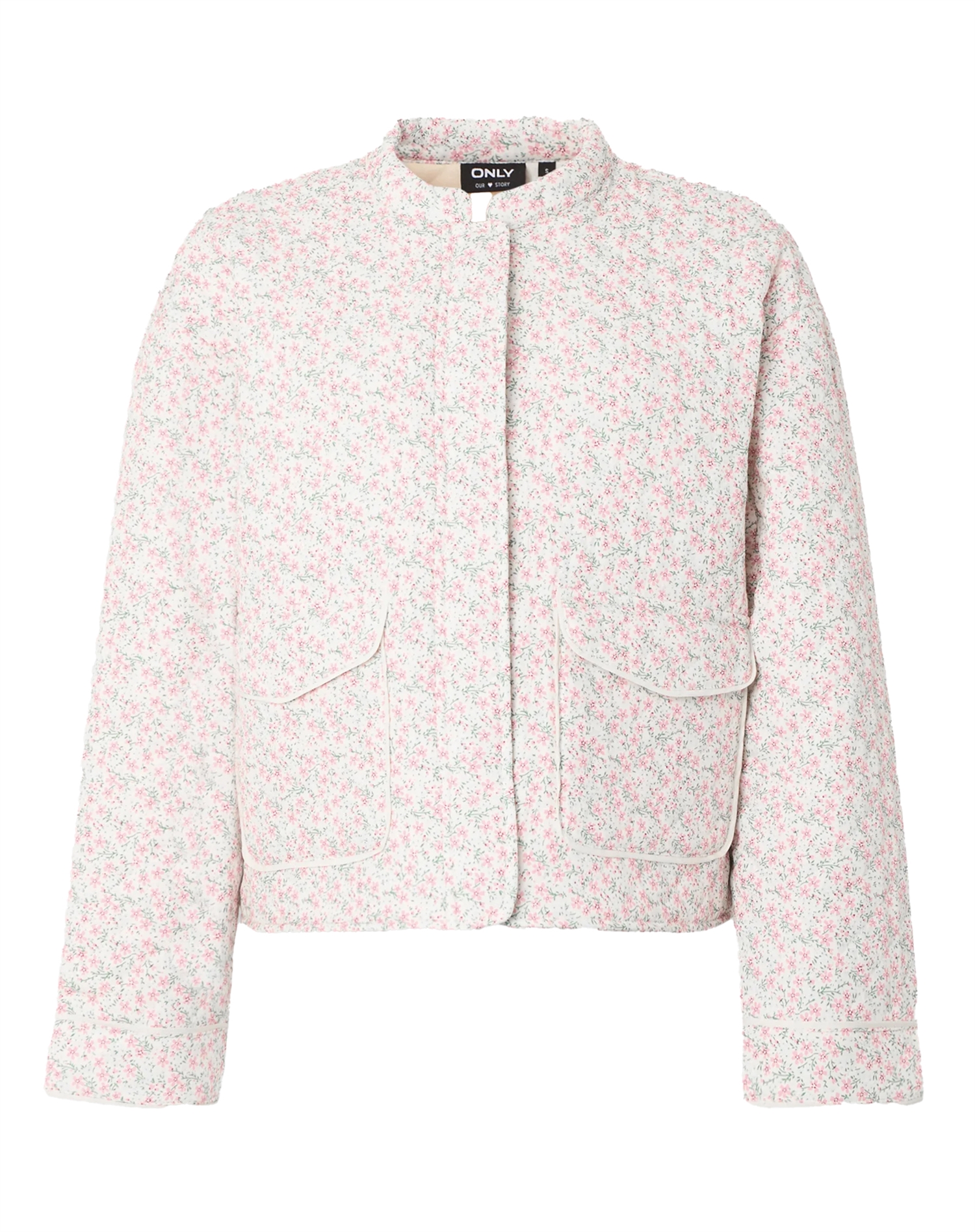 Only - Hallie Quilted Jakke - Cloud Dancer/Pink DitsyOnly - Hallie Quilted Jakke - Cloud Dancer/Pink Ditsy