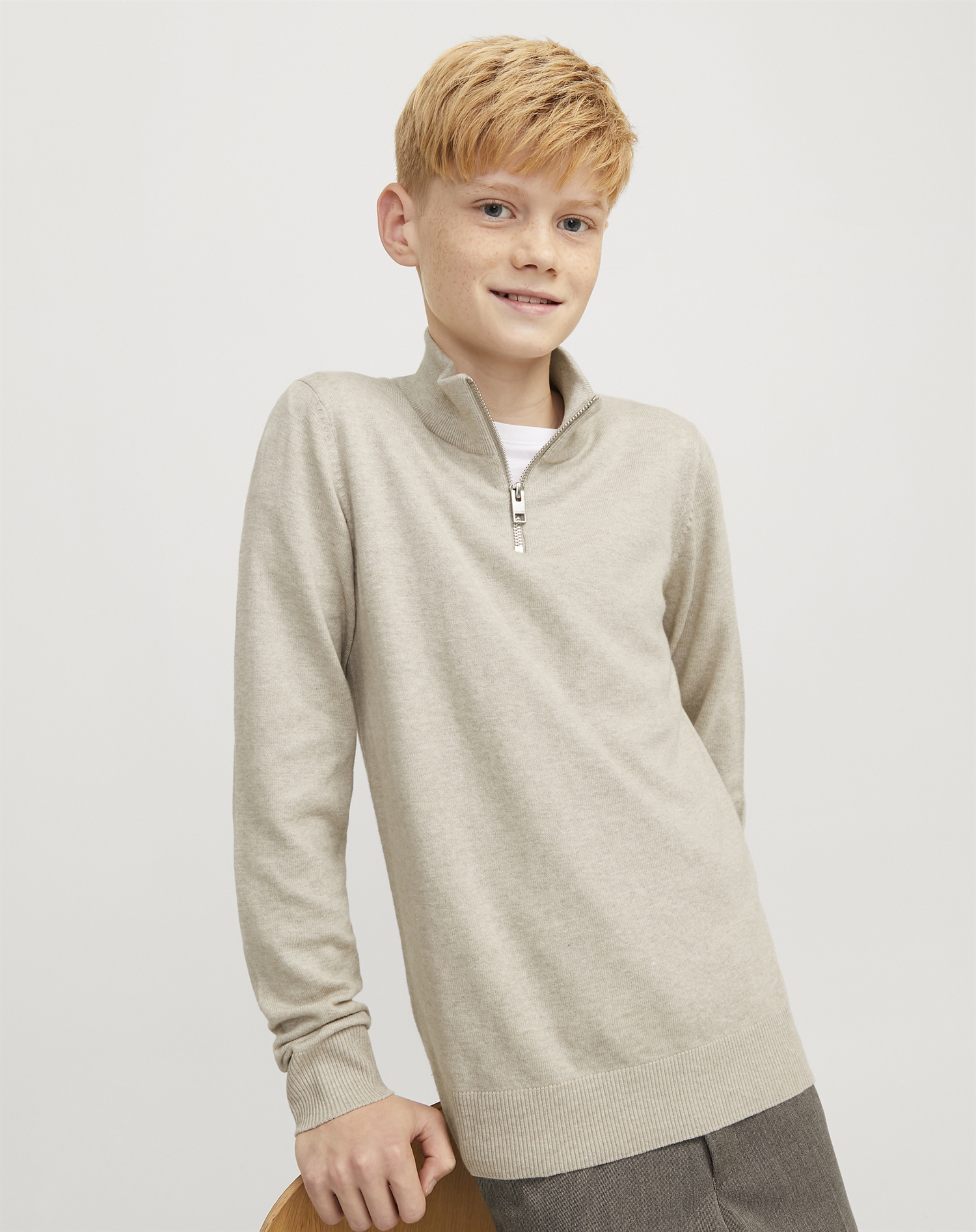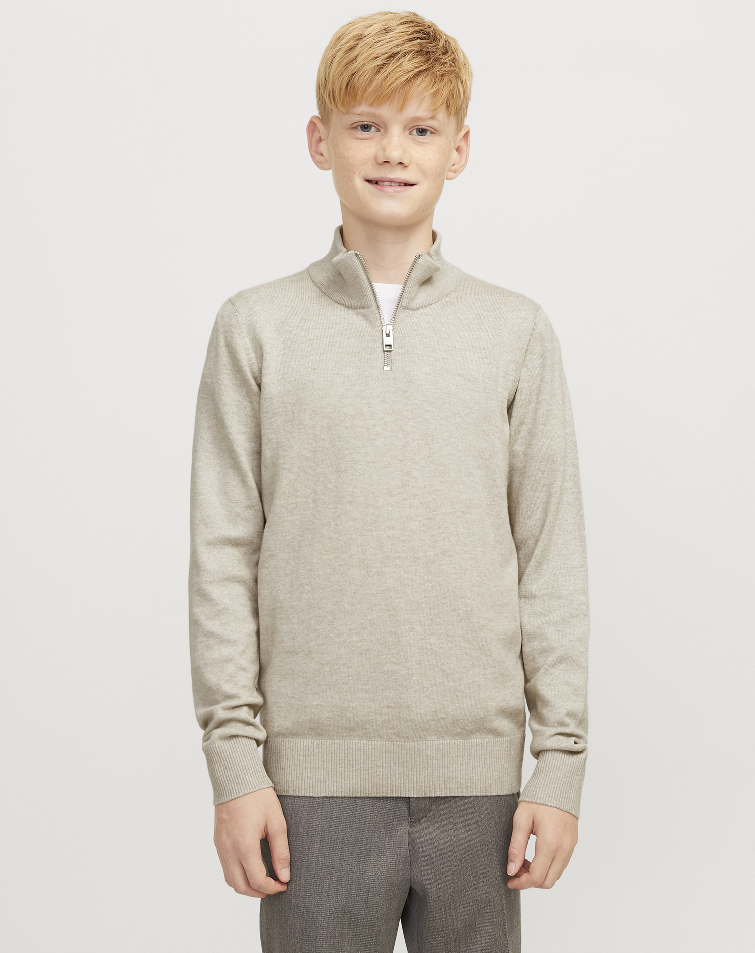 Jack & Jones Junior - JJEEmil Half Zip Strik - Oatmeal