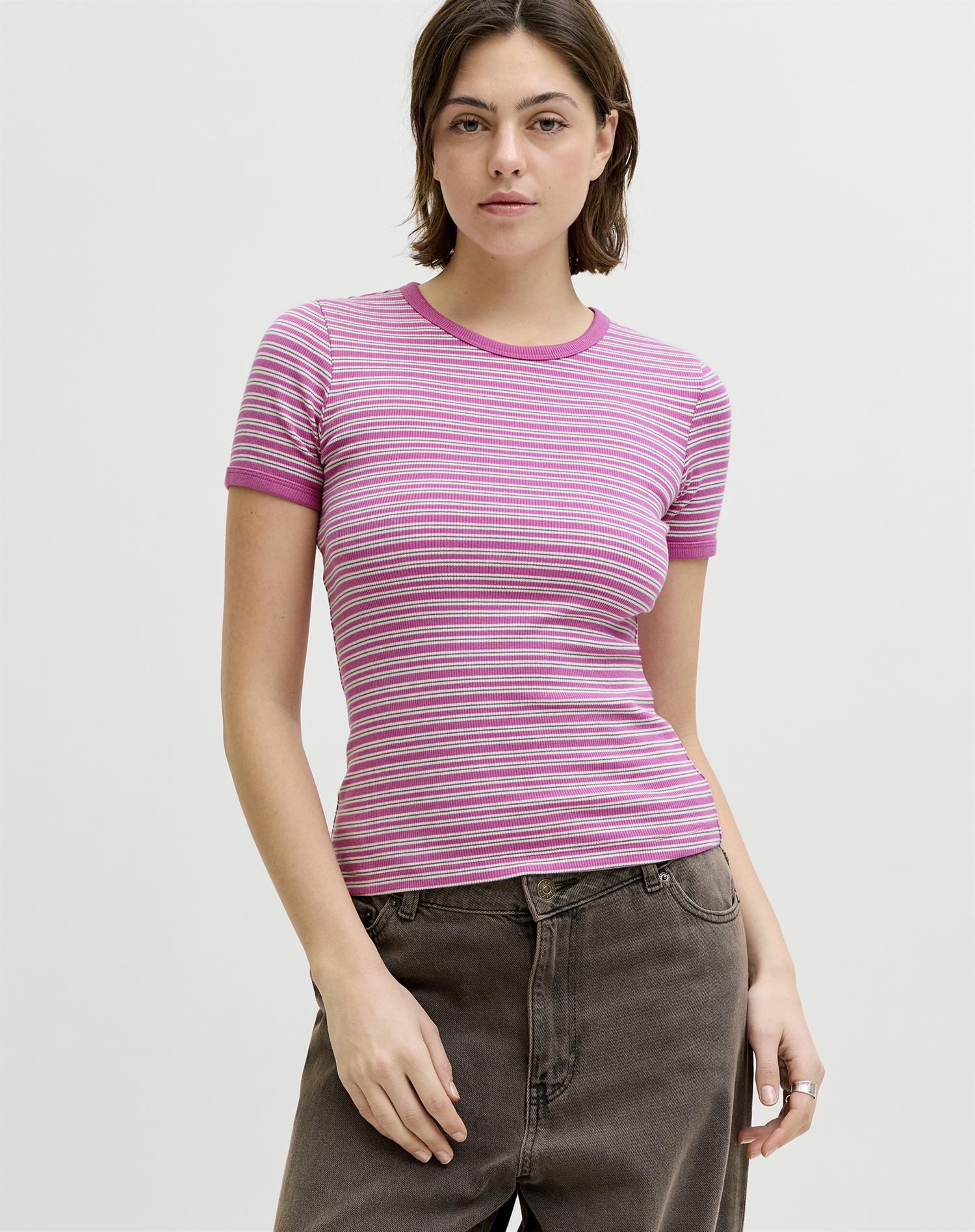 JJXX - JXFrankie Stripe T-Shirt - Fiji Flower/Brown Lent