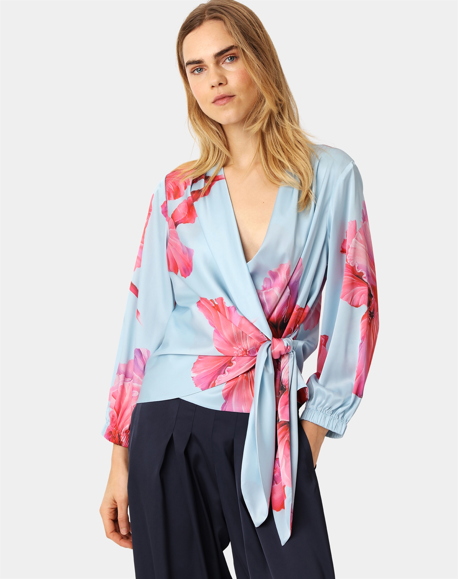 Den er et godt bud på en bluse, der kan bruges til både hverdag og festlige lejligheder. Kombinér den med et par klassiske jeans og flade sko for et afslappet look, eller style den med en elegant nederdel og høje hæle, når du skal ud om aftenen. De store blomster i fuchsia nuancer skaber et blikfang, der gør, at du skiller dig ud med stil.