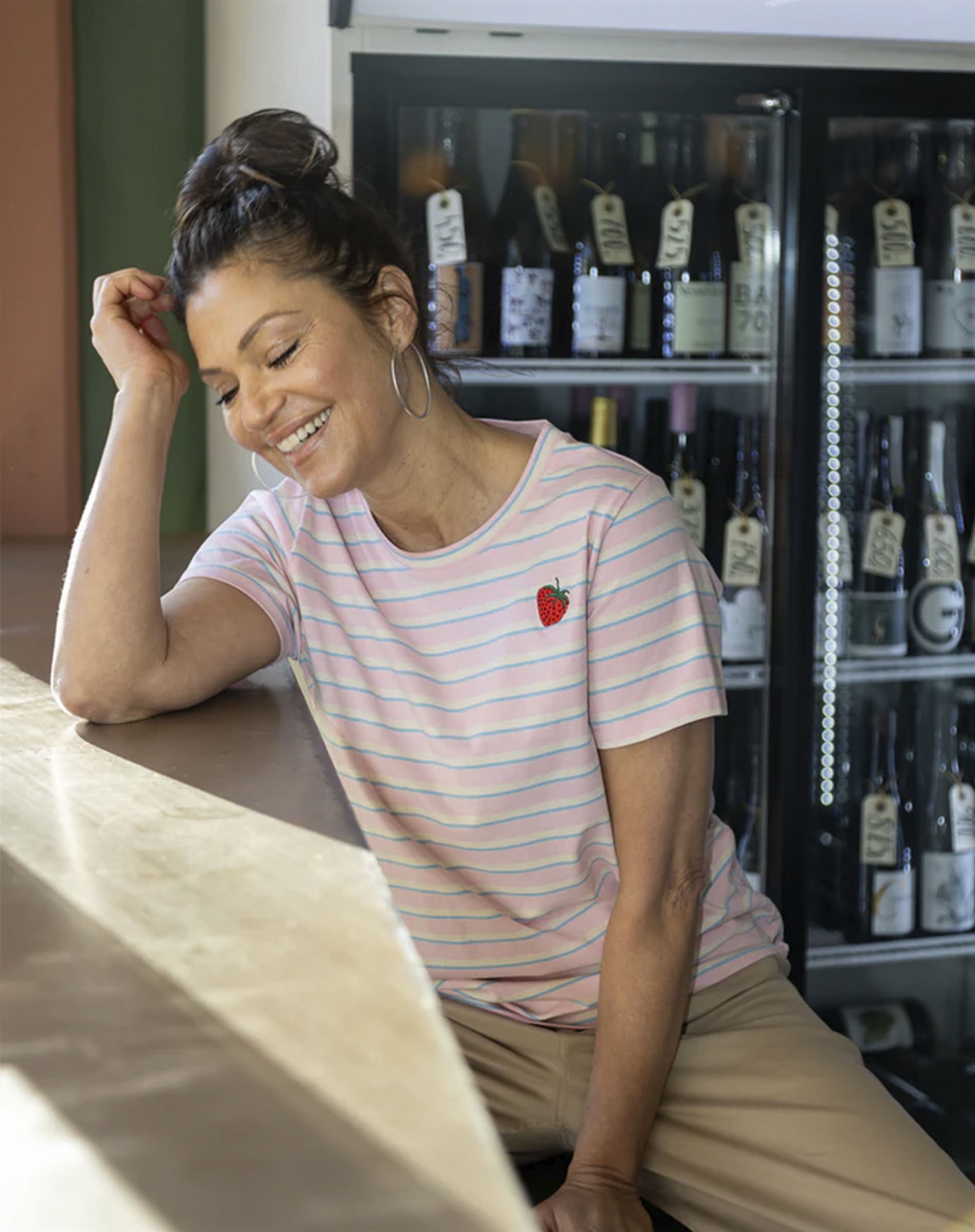 Når det kommer til styling, er denne T-shirt en alsidig spiller. Du kan let parre den med et par blå jeans for et afslappet look, der er velegnet til dagligdags eventyr. Eller måske kombinerer du den med en elegant nederdel og et par lækre sandaler, når solen titter frem, og du har brug for noget let og luftigt.