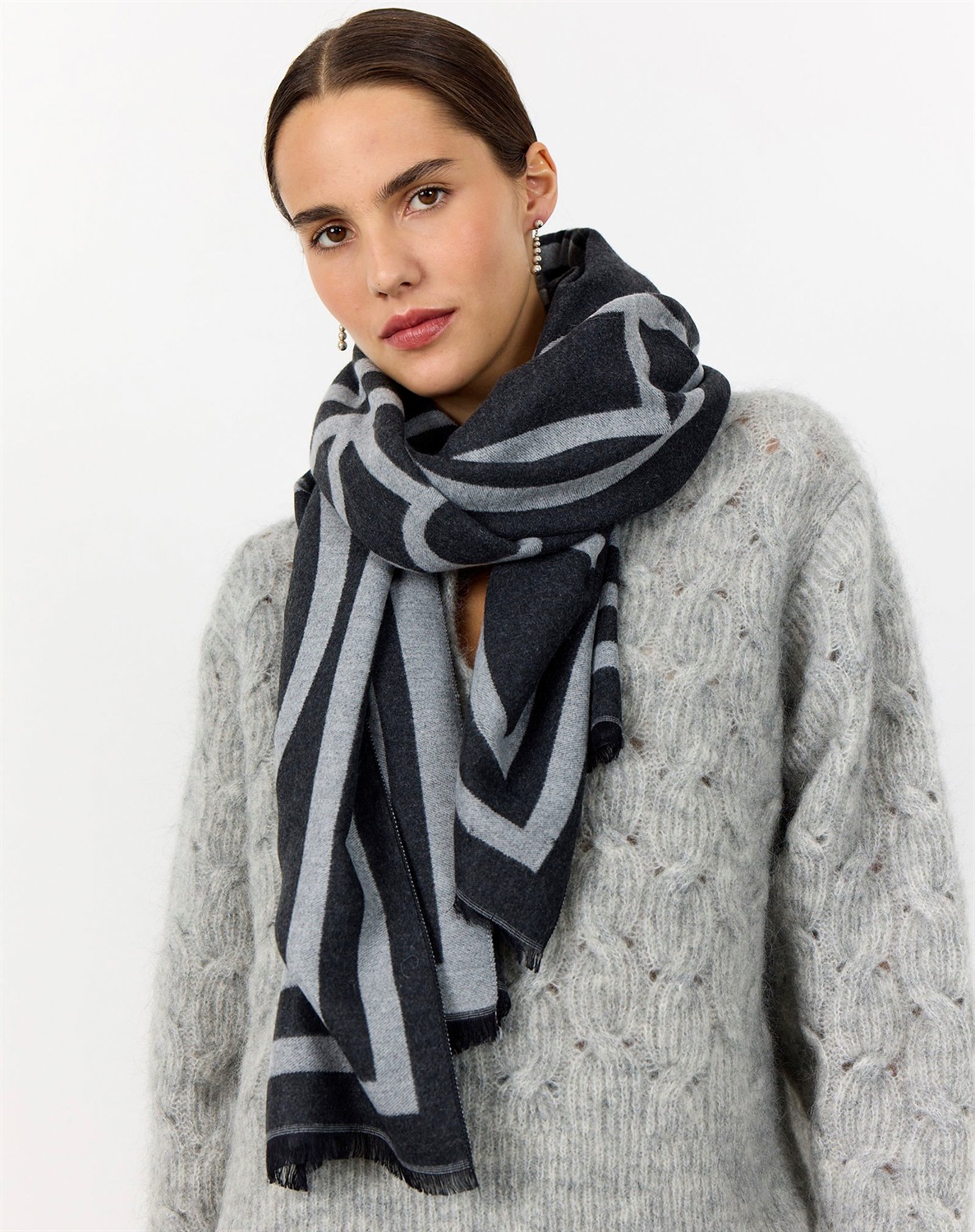 • Tørklædet har print og frynsekant