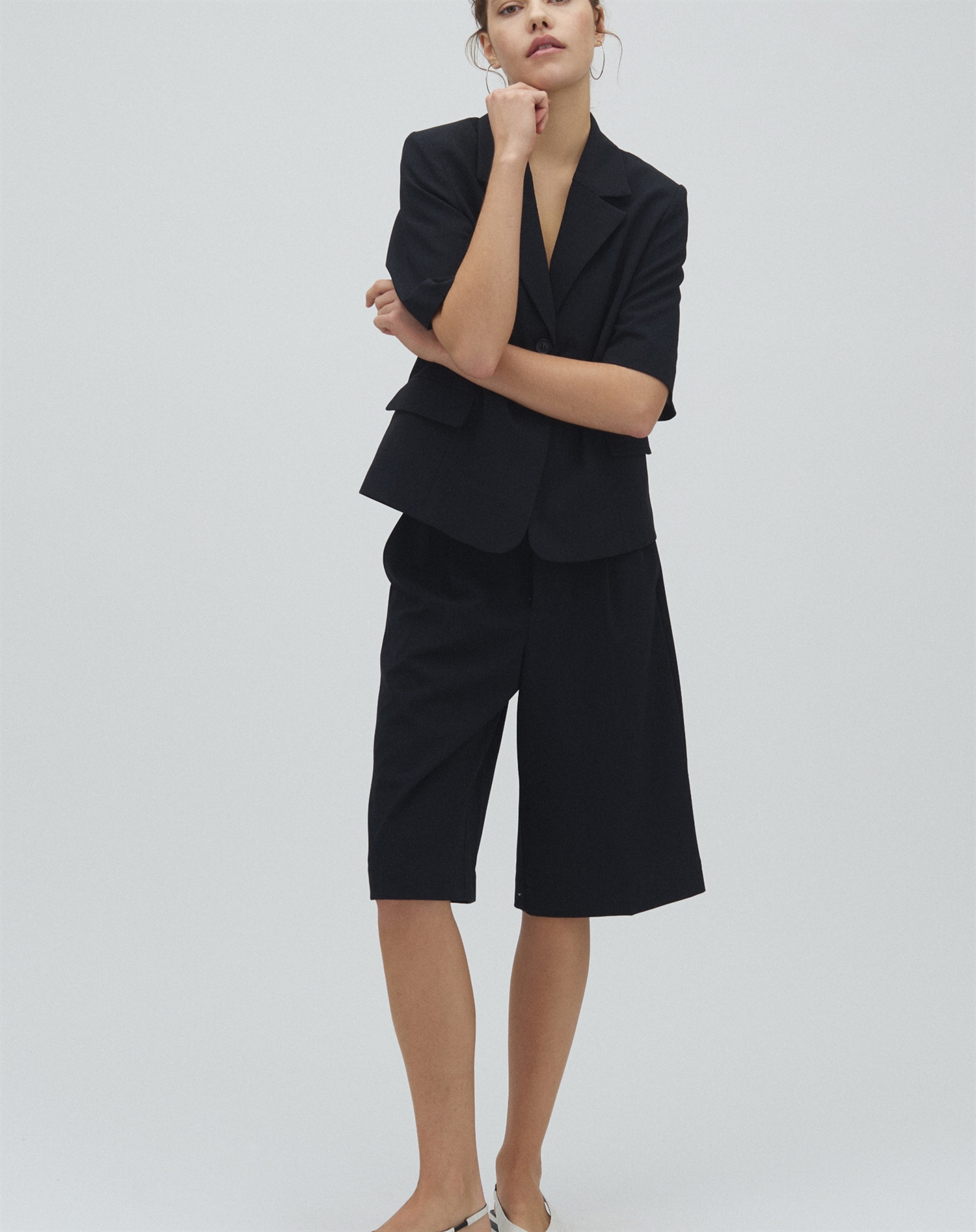 Disse shorts kan du let style med en løs, hvid skjorte for et klassisk look, eller med en farverig t-shirt og sneakers, hvis du er i humør til noget mere sprudlende. De er også perfekte sammen med sandaler eller espadriller, når du skal ned til stranden eller ud på en solrig café-tur.