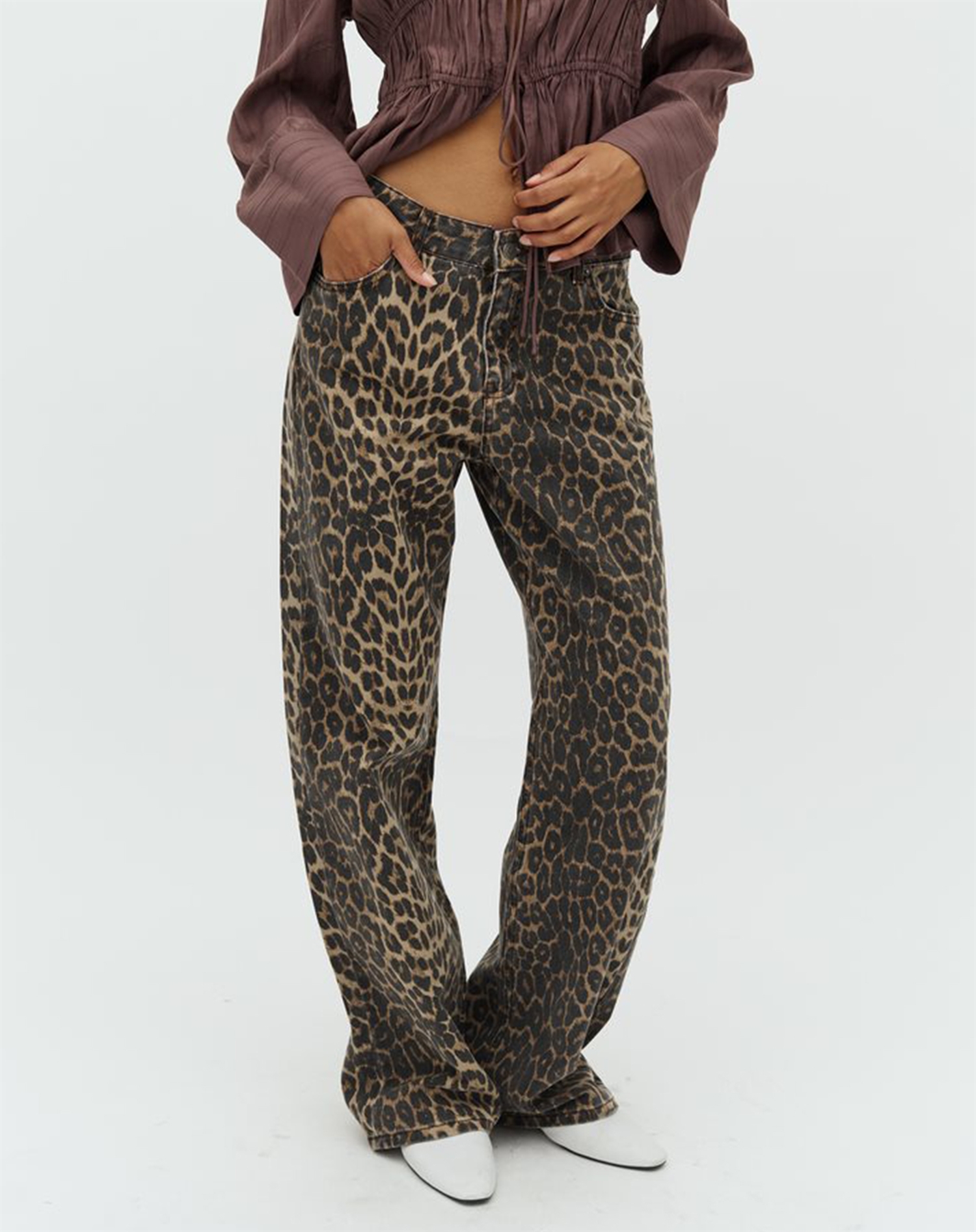 Disse jeans er velegnede til både afslappede hverdagslook og mere festlige anledninger. Du kan style dem med en enkel hvid t-shirt og sneakers for et cool, afslappet outfit, eller tilføje en elegant bluse og ankelstøvler for en aften i byen. Det lette leopardmønster gør dem perfekte til at skabe et statement uden at være for overvældende.