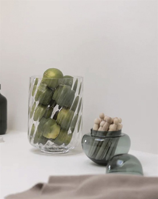 Meadow Swirl Cylinder Vase - Clear - SpecktrumSkøn vase i farven clear.Håndlavede mønster samt mundblæst.Lille fod.21 x 15 cm.Hver vase er unik i set udseende.Der kan være variationer af små luftbobler.