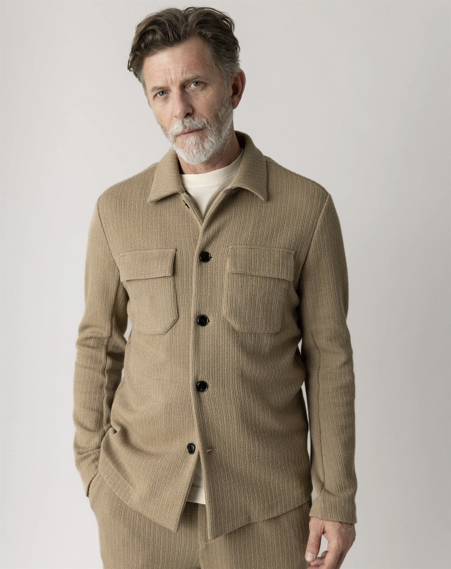 Denne overshirt er ideel til lag-på-lag styling. Overvej at bære den over en klassisk hvid T-shirt for et afslappet look eller ovenpå en let sweater på køligere dage. Den neutrale "Dune" farve gør det nemt at matche med både jeans og mere formelle bukser, hvilket gør den til et alsidigt valg til både hverdag og arbejde.
