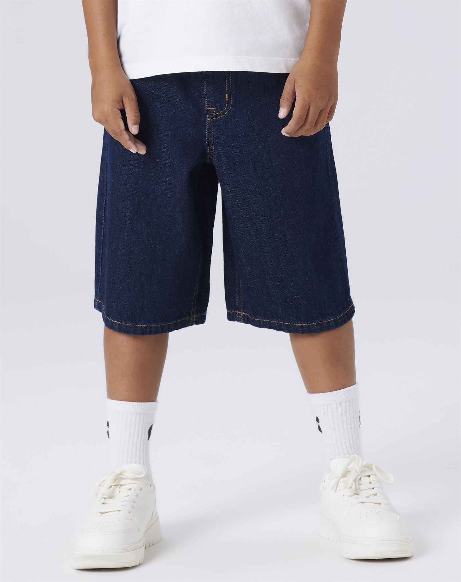 Forestil dig en lun sommerdag, hvor du har brug for noget let og bekvemt, der samtidig udstråler stil og selvsikkerhed. Name It - NKMBen Bermuda Shorts i mørkeblå denim er den slags beklædningsgenstand, der kan blive din go-to favorit. Den klassiske mørkeblå farve gør dem utroligt alsidige, så de nemt kan indgå i mange forskellige outfits og passer til mange lejligheder.
