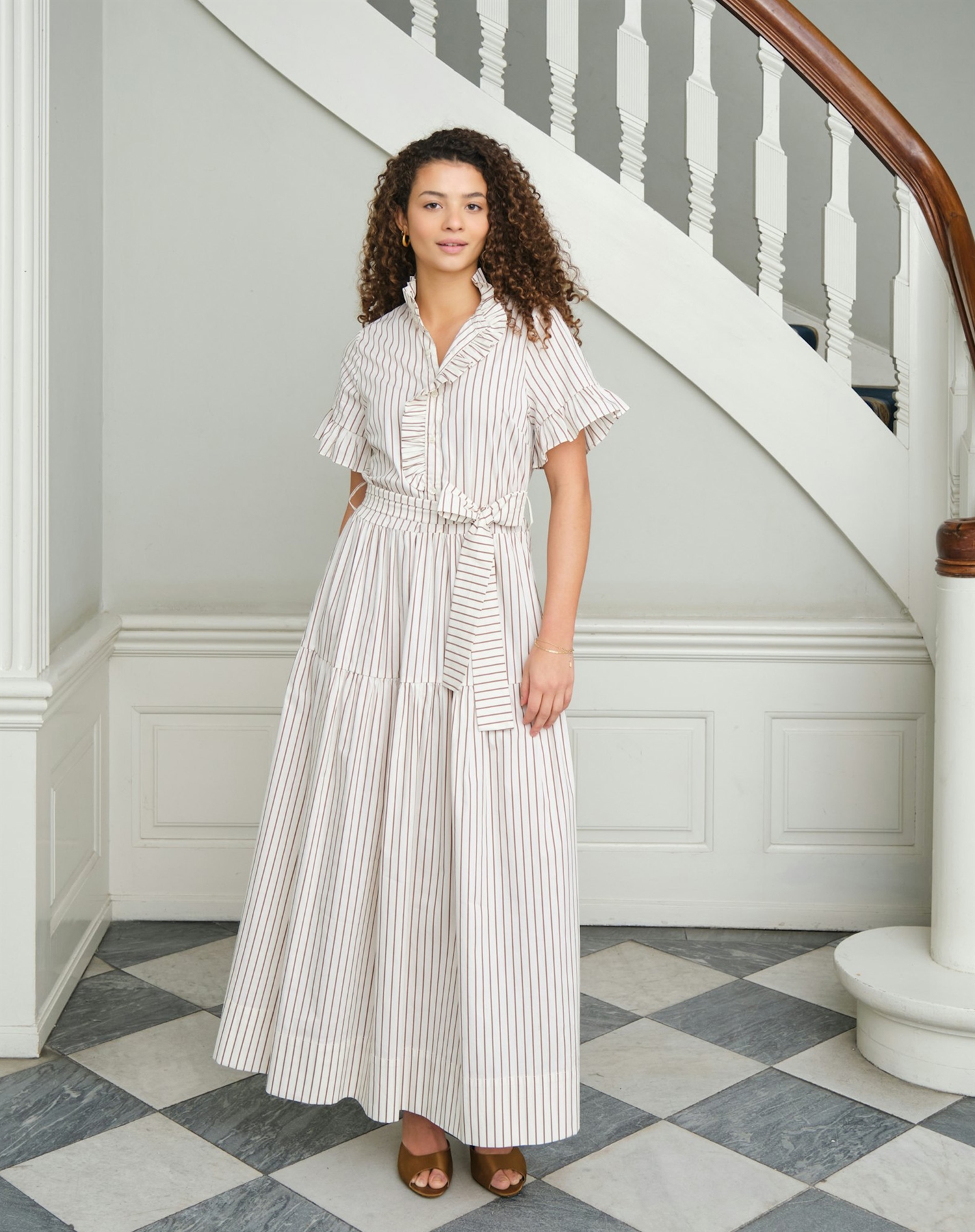 Forestil dig en sommerdag, hvor du parrer denne kjole med et par sandaler og en let stråhat for et afslappet, men stadig elegant look. Om aftenen kan du tilføje et par stilfulde hæle og en smuk clutch for at transformere outfittet til noget mere sofistikeret. Det er den slags kjole, der kan bære dig fra brunch til cocktailparty med enkle ændringer i dine accessories.