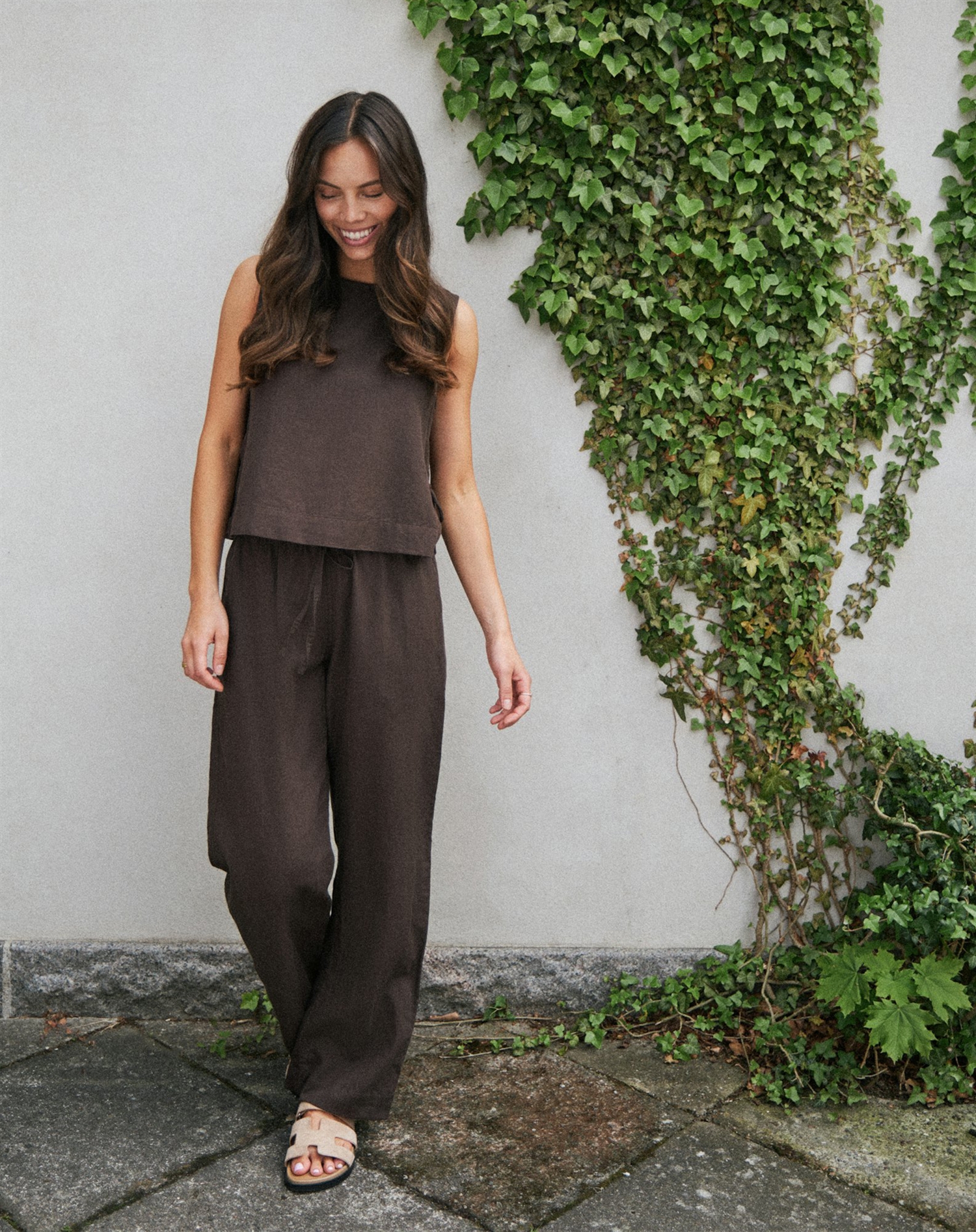 Med Neo Noir's Svetlana linen Top i mørkebrun, får du en harmonisk blanding af elegance og casual komfort, der gør den til en uundværlig del af dit klædeskab.