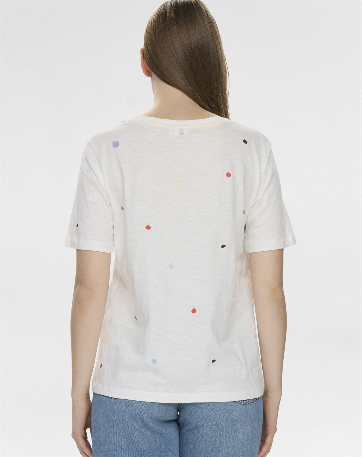Hvorfor vil du elske denne T-shirt? For det første er farven Cloud Dancer subtil og alsidig, en nuance der passer til de fleste outfits. For det andet er det en T-shirt, der føles let og komfortabel at have på, hvilket gør den til en pålidelig partner i din daglige påklædning. Endelig er det en alsidig tilføjelse til enhver garderobe, der kan løfte både casual og mere formelle looks.