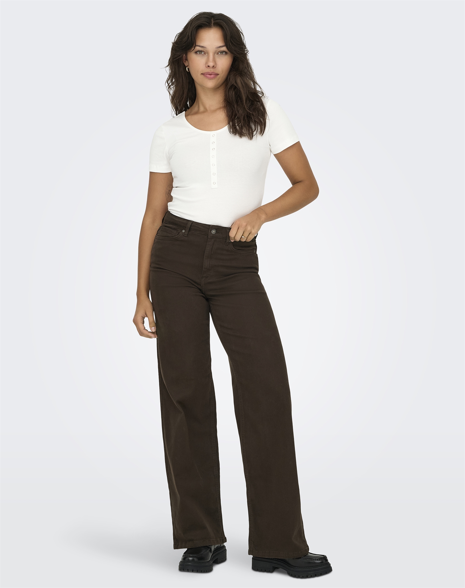 Forestil dig et par jeans, der ikke bare er et stykke tøj, men en udtryk for både stil og komfort. ONLMadison Wide Jeans i Dark Brown Denim fra Only er netop sådan en type bukser. Med deres dybe, mørkebrune nuance tilføjer de et strejf af sofistikation til enhver garderobe, mens den brede pasform giver et moderne og afslappet udtryk. Disse jeans er alsidige og kan styles på et utal af måder. Prøv at kombinere dem med en hvid, enkel T-shirt og et par sneakers for et afslappet hverdagslook. Skal du ud om aftenen, kan du pifte dem op med en elegant, silkeagtig bluse og et par hæle. Deres farve og pasform gør dem velegnede til både dag og nat, hvilket betyder, at de nemt kan tage dig fra kontoret til en hyggelig middag ude. Der er mange grunde til at elske ONLMadison Wide Jeans. Den brede pasform giver både komfort og stil, så du kan bevæge dig frit og stadig se fantastisk ud. Deres mørkebrune farve er en smule anderledes end de klassiske blå jeans, hvilket gør dem til en unik tilføjelse til din samling. Desuden er de nemme at matche med næsten alt i din garderobe, hvilket gør dem til en praktisk og stilfuld investering. ONLMadison Wide Jeans er et godt bud for dem, der ønsker at tilføje et strejf af moderne elegance til deres hverdagslook uden at gå på kompromis med komforten. Med deres tidløse design vil de hurtigt blive en favorit i din garderobe, der kan bruges igen og igen, sæson efter sæson.