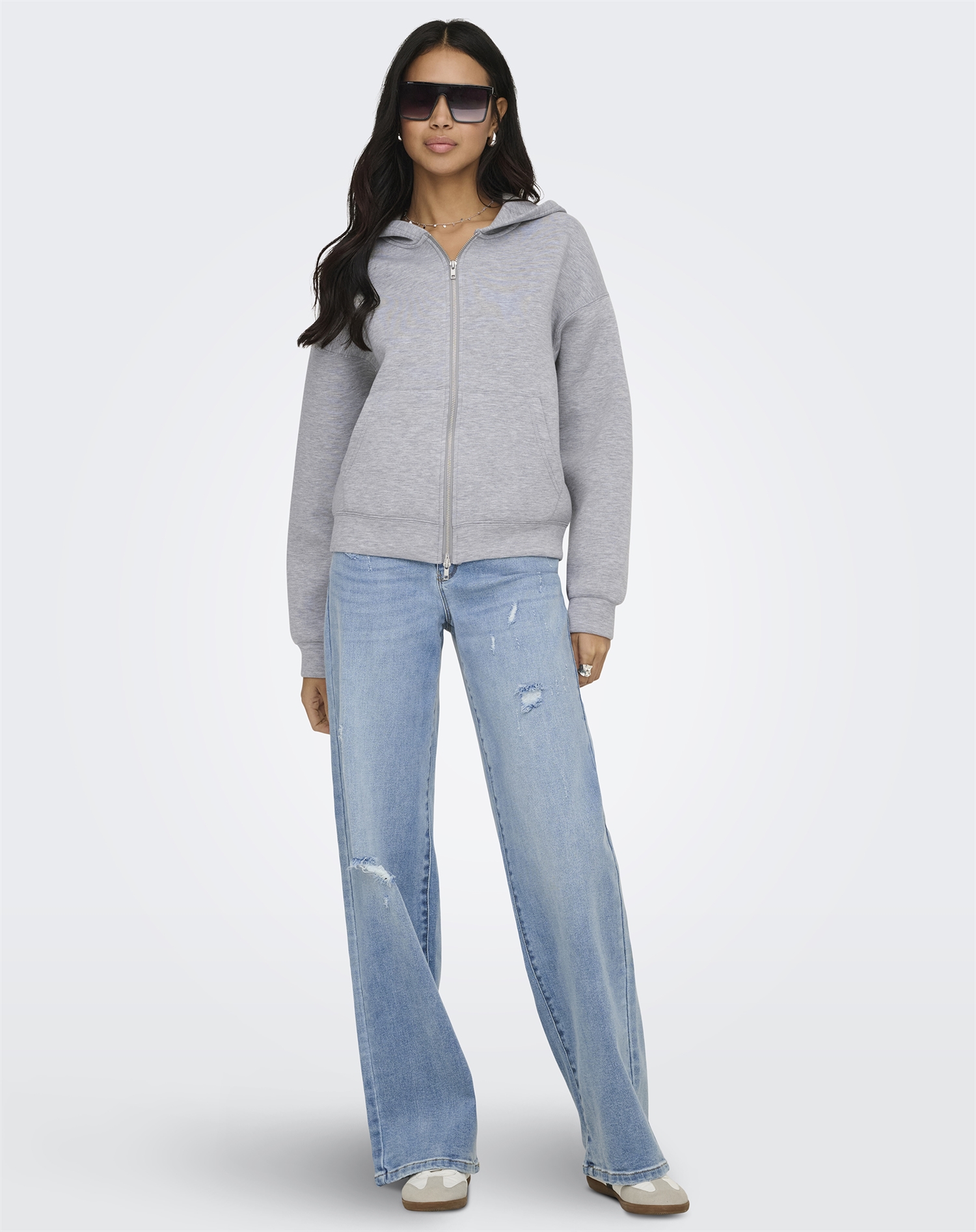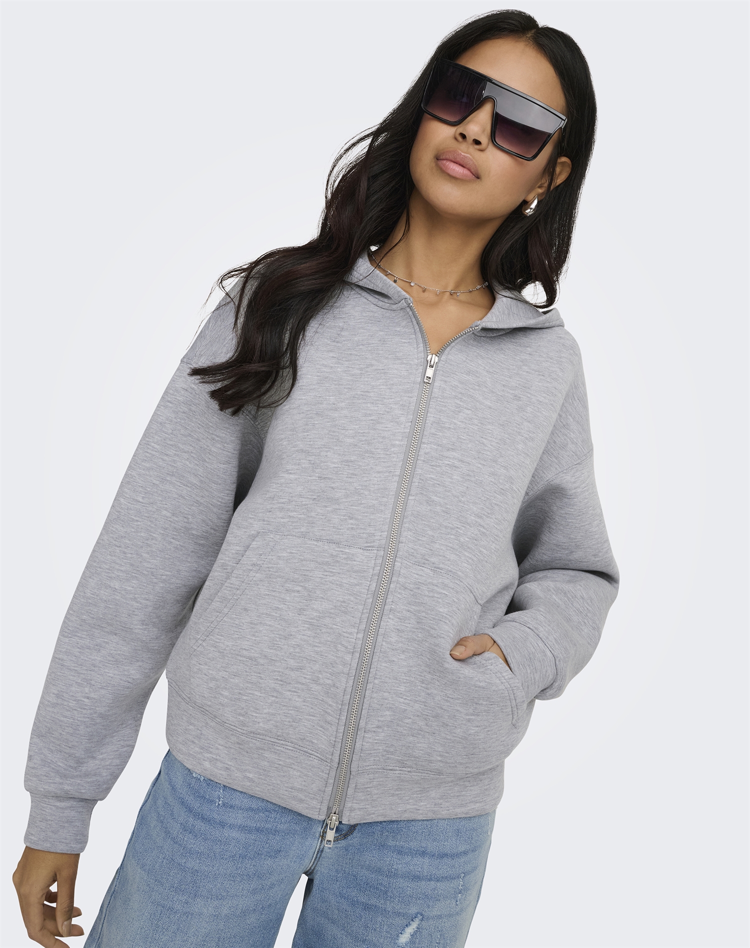 Only - ONLNaomi Two-Way Zip Hoodie - Light Grey Melange