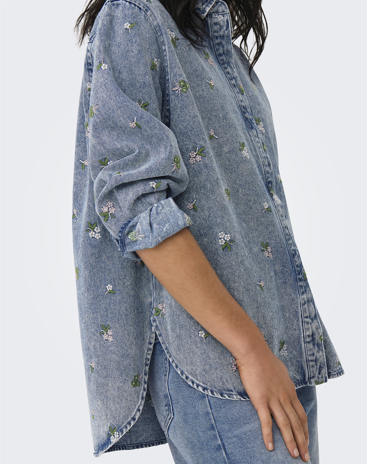Only - ONLVera Flower Skjorte - Light Blue Denim