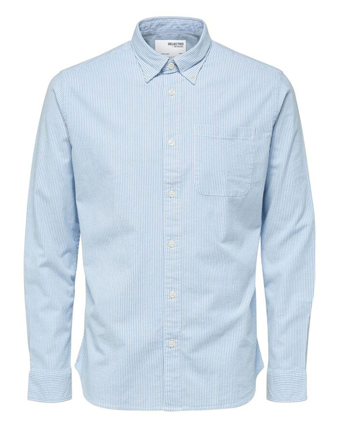 klassisk skjorte fra Selected. Skjorten har lange ærmer, klassik krave og gennemknappet. Den har en normal pasform, som gør den komfortabel at have på. På det ene bryst har den en lomme, som både er praktisk og super cool. Perfekt skjorte til både hverdag og aften. Brug den åbenstående med t-shirt, denim jeans og sneakers eller blazer, bukser og pæne sko alt efter hvilket look der måtte ønske Oplev alle de lækre styles fra Selected her