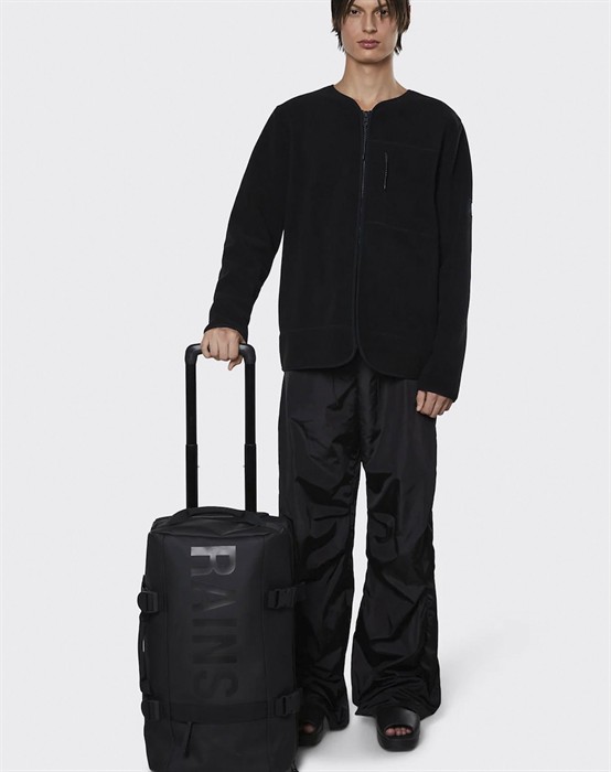 Texel W3 Small Rejsetaske - RainsRejsetaske/kabinekuffet fra RainsLavet af 100% Polyester med polyuretan-belægningVandtæt med søjletryk på 8000 mmKan indeholde 40 L og vejer 3214 gLynlåslomme foran med Rains-logoTo hovedrum med meshlågJusterbare kompressionsstropper i siderneTeleskophåndtagTo lydløse hjul