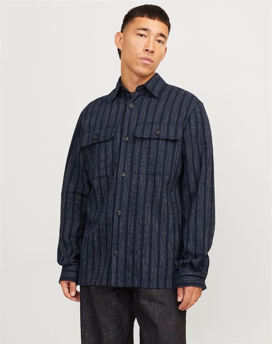 Herringbone Zip Overshirt - Dark Navy