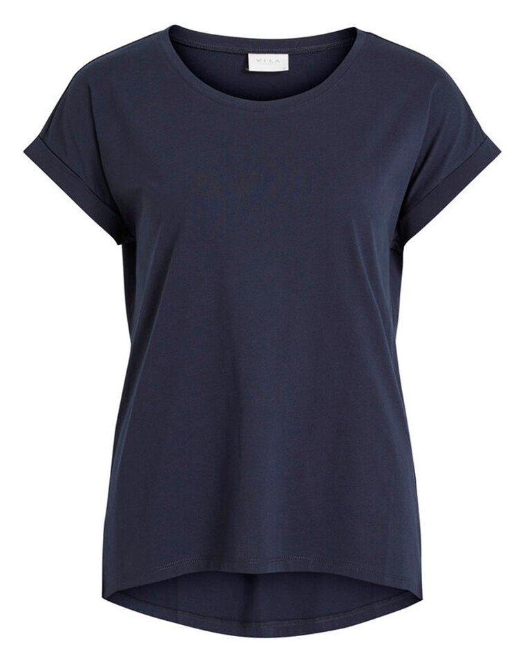 Vidreamers Pure T-shirt - Vila Enkel basis t-shirt med et lille oprullede ærme og rund hals fra Vila. Enkel basis t-shirt med et lille oprullede ærme og rund hals. T-shirten er normal i pasformem, dog lidt løstsiddende. T-shirten er et must-have i enhver kvindes garderobe. Det enkelte udtryk de har, gør det nemt, at sætte næsten alt til t-shirten. Du kan blandt andet style den til et par pæne bukser med en blazer over, eller et par stramme jeans og en lækker strik. Pift dit sæt op med accesories og et par fine sandaler.  Vidreamers Pure T-shirt kan shoppes i flere farver.