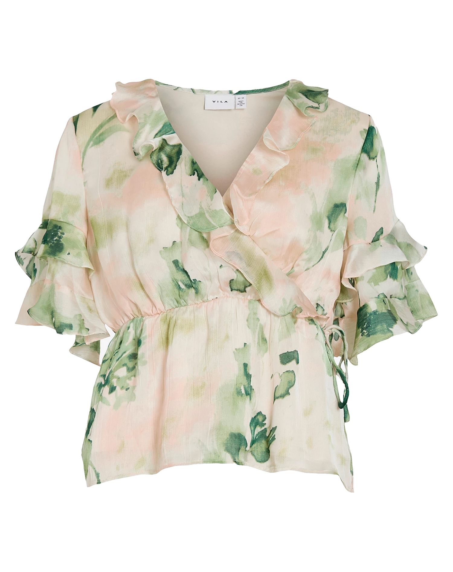 Vila - VIMolina 2/4 Flounce Wrap Bluse - Birch/MolinaVila - VIMolina 2/4 Flounce Wrap Bluse - Birch/Molina
