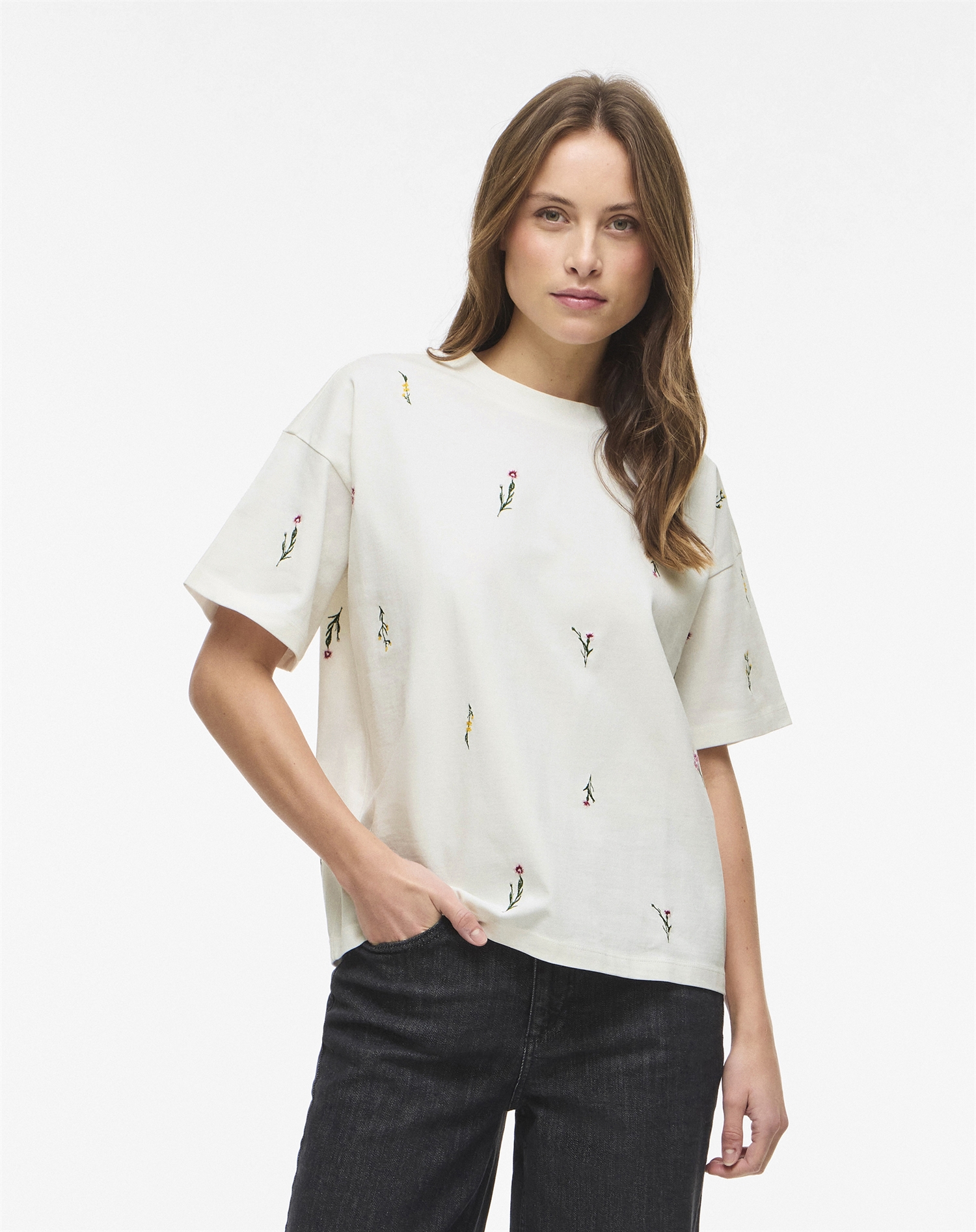 Vila - VIMonie Floral Embrodery T-Shirt - Snow WhiteVila - VIMonie Floral Embrodery T-Shirt - Snow White Vila - VIMonie Floral Embrodery T-Shirt - Snow White