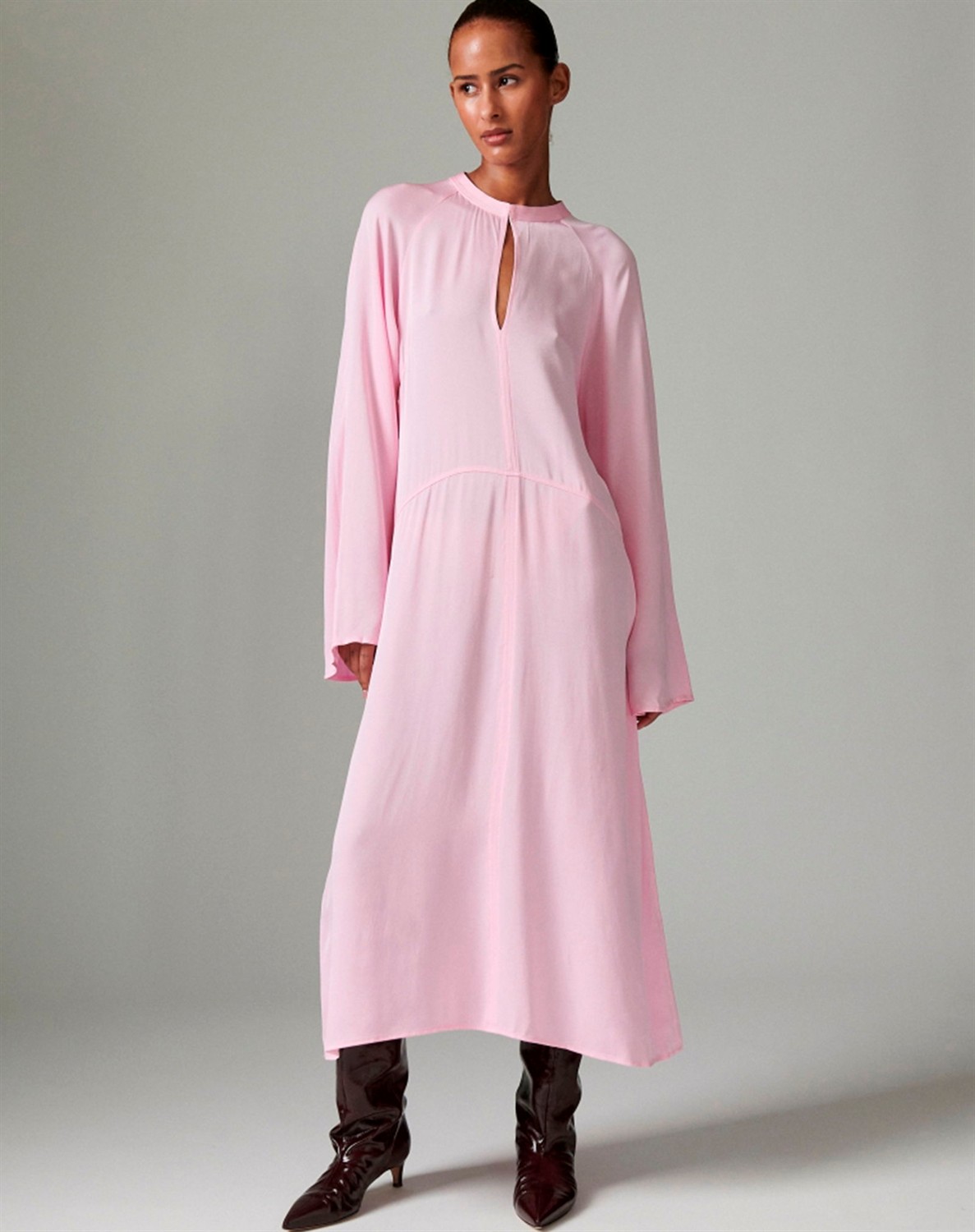 Lyserød kjole.Brede flotte ærmer.Flot udskæring ved halsen.Giver en flot figur.Let og lækkert materialeDen smukke kjole fra Day Birger et Mikkelsen er i en skøn lyserød farve. Den falder yndigt grundet det lette materiale samt feminine pasform. Style kjolen til hverdag med et jeans og støvler. En aften ude er kjolen smuk med en høj hæl og en taske fra Cala Jade.