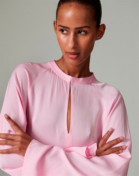 Day Birger et Mikkelsen - Walker Matte Crepe kjole - Pink Lady Lyserød kjole.Brede flotte ærmer.Flot udskæring ved halsen.Giver en flot figur.Let og lækkert materialeDen smukke kjole fra Day Birger et Mikkelsen er i en skøn lyserød farve. Den falder yndigt grundet det lette materiale samt feminine pasform. Style kjolen til hverdag med et jeans og støvler. En aften ude er kjolen smuk med en høj hæl og en taske fra Cala Jade.
