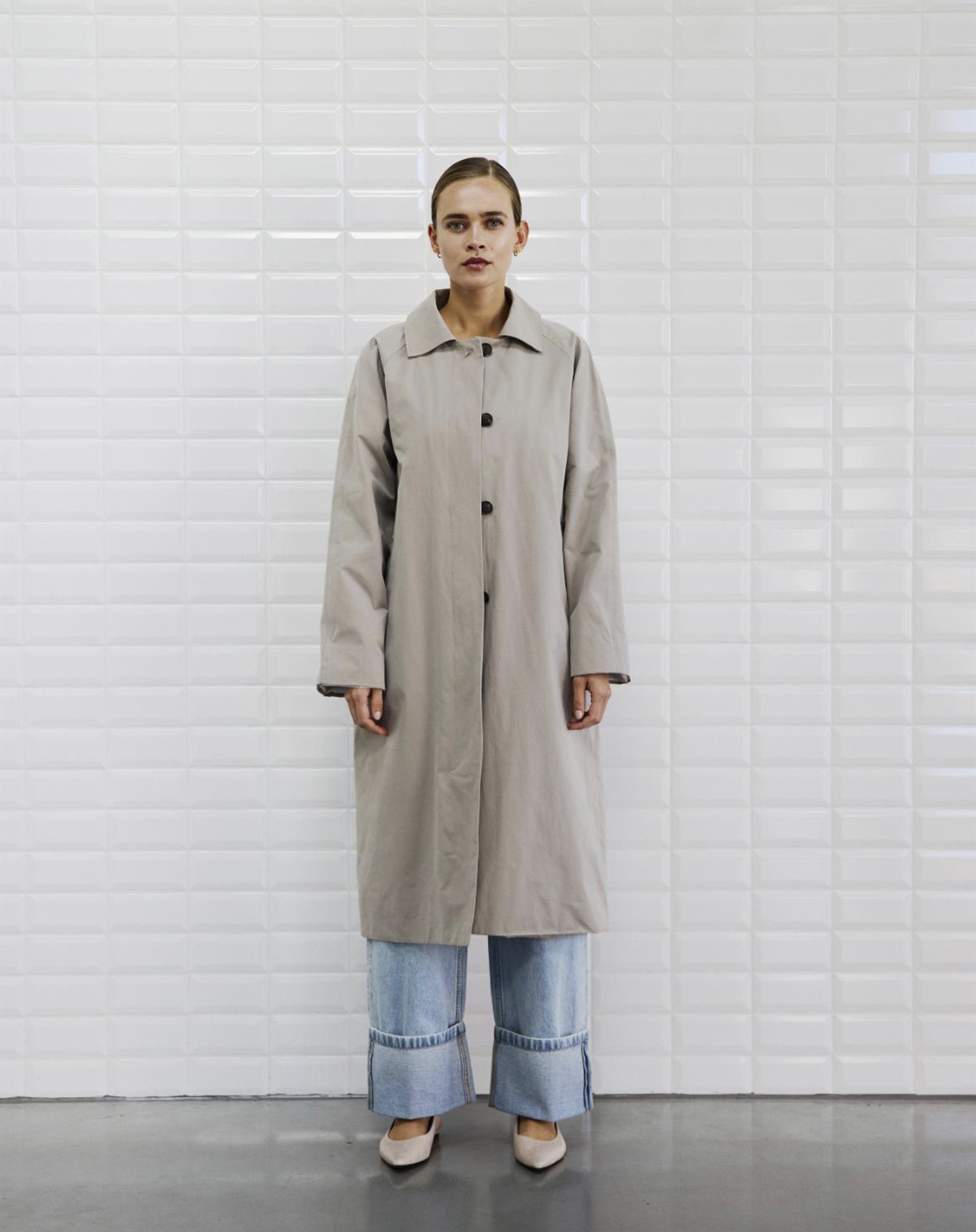 Hvorfor vil du elske den? Fordi den bringer et strejf af elegance til din hverdag uden at gå på kompromis med komforten. Den midi-lange længde giver dig både stil og varme, mens den neutrale farve gør det nemt at integrere den i din eksisterende garderobe. Det er en frakke, du kan regne med sæson efter sæson, hvilket gør den til en klog investering.